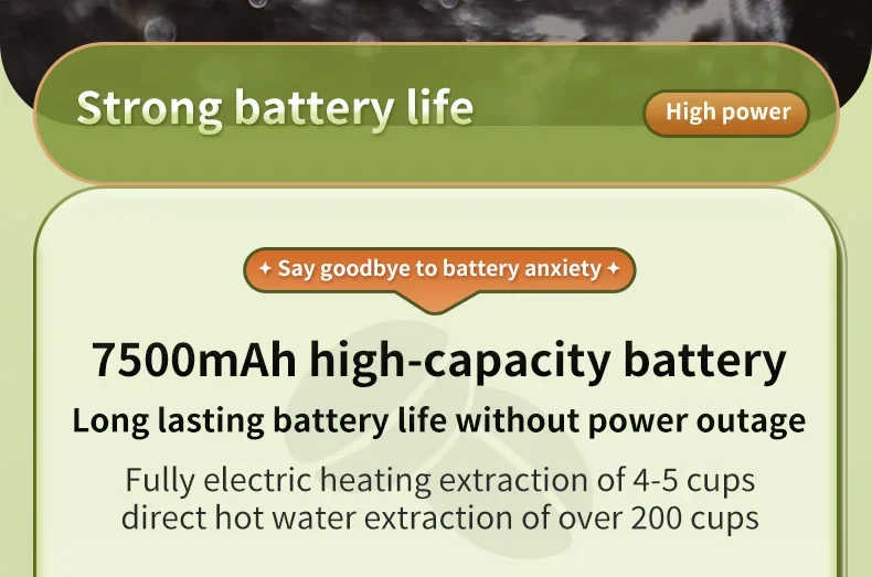 Batteria a lunga durata da 7500 mAh| Libertà del caffè ovunque