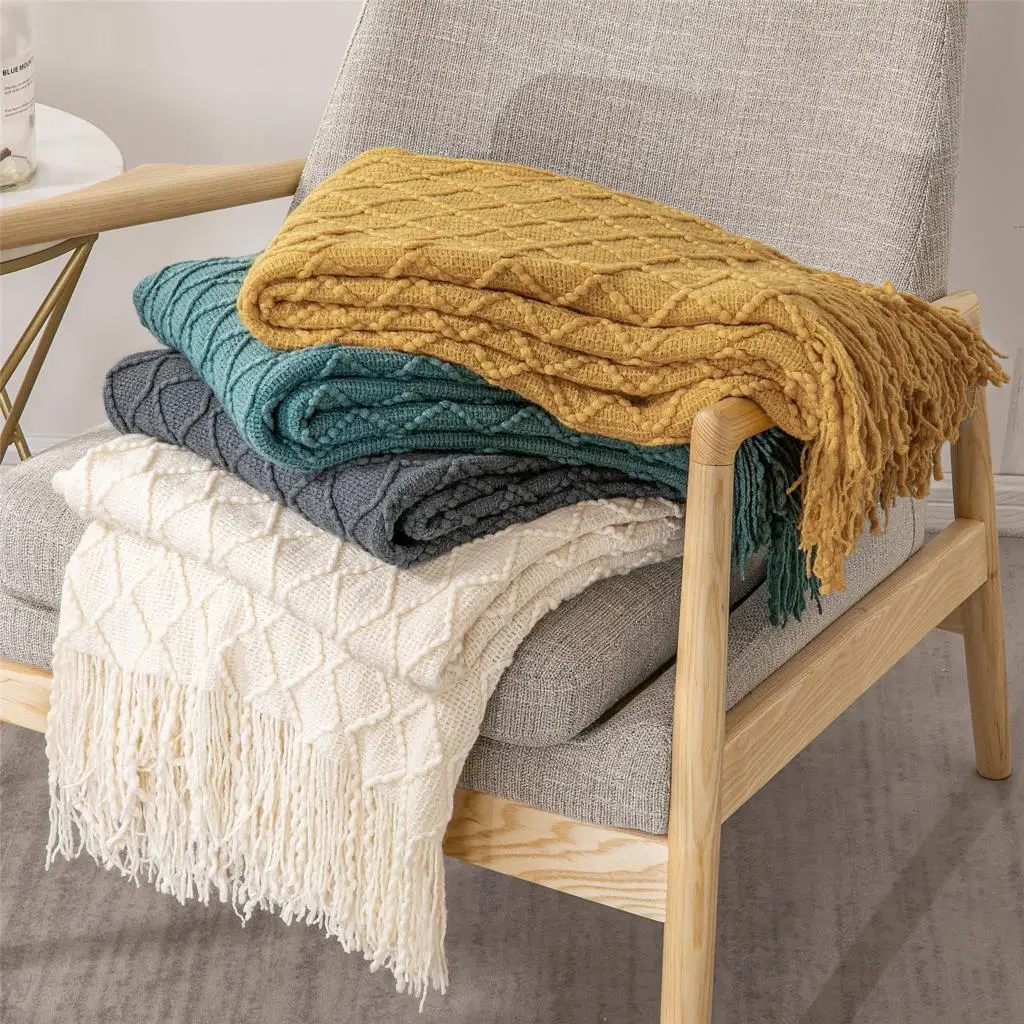 *Il nappa scozzese giallo-grigio è di 15 cm, e la lunghezza della coperta lavorata a maglia tinta unita è di 20 cm