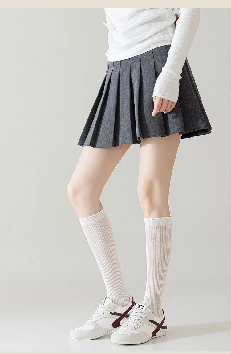 6 recensioni per Calze da donna Calzini Primavera Estate Donna Cotone Tinta unita Bordo lattuga Roll-edge Sottile Calzino lungo casual al ginocchio