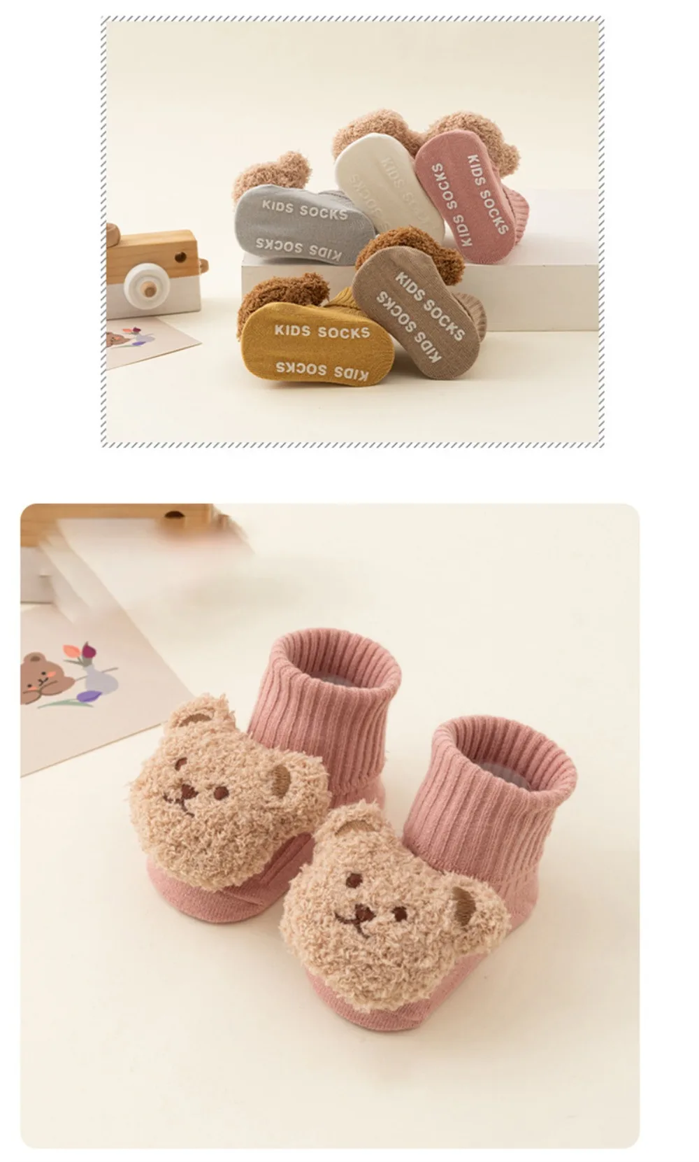 Calzini per bambini con orsetto simpatico cartone animato per ragazzo ragazza inverno morbido cotone con suola antiscivolo calzino per neonato per bambini addensare calzini caldi