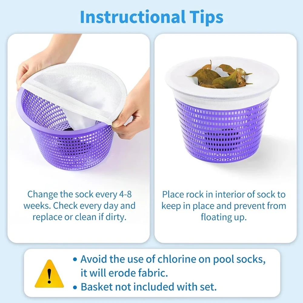 3.【DESIGN LOW-MAINTENANCE】Smontaggio e sostituire semplicemente con un nuovo.La confezione da 5/10 può essere utilizzata come calzini filtranti usa e getta e supporta i cicli di filtraggio estesi.I nostri calzini filtranti con cestello sgrassante per piscine hanno un processo di pulizia semplificato: risciacquo semplicemente con un tubo da giardino o sostituire ogni 4-8 settimane per mantenere una filtrazione efficiente.