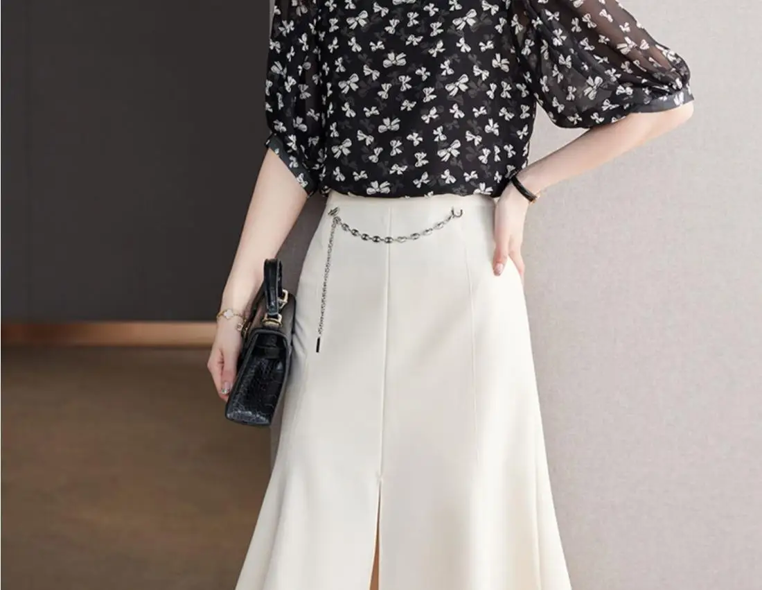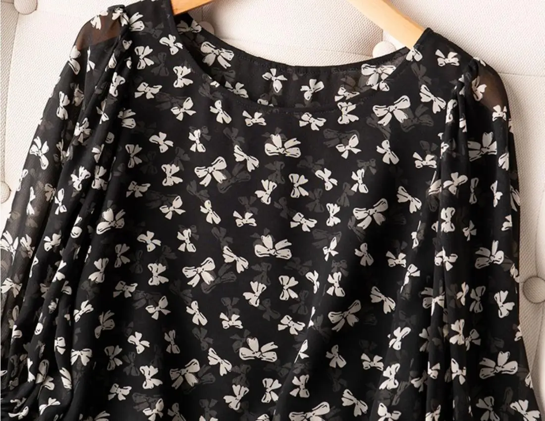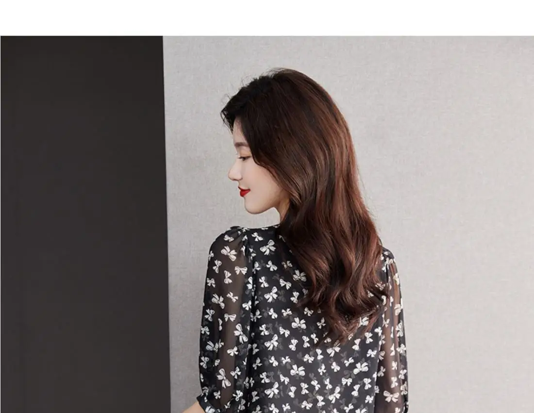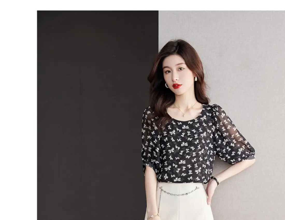 Camicetta di chiffon pullover girocollo semplice estivo Camicetta di chiffon alla moda da donna Stile leggero e maturità Elegante design con fiocco Top sottile