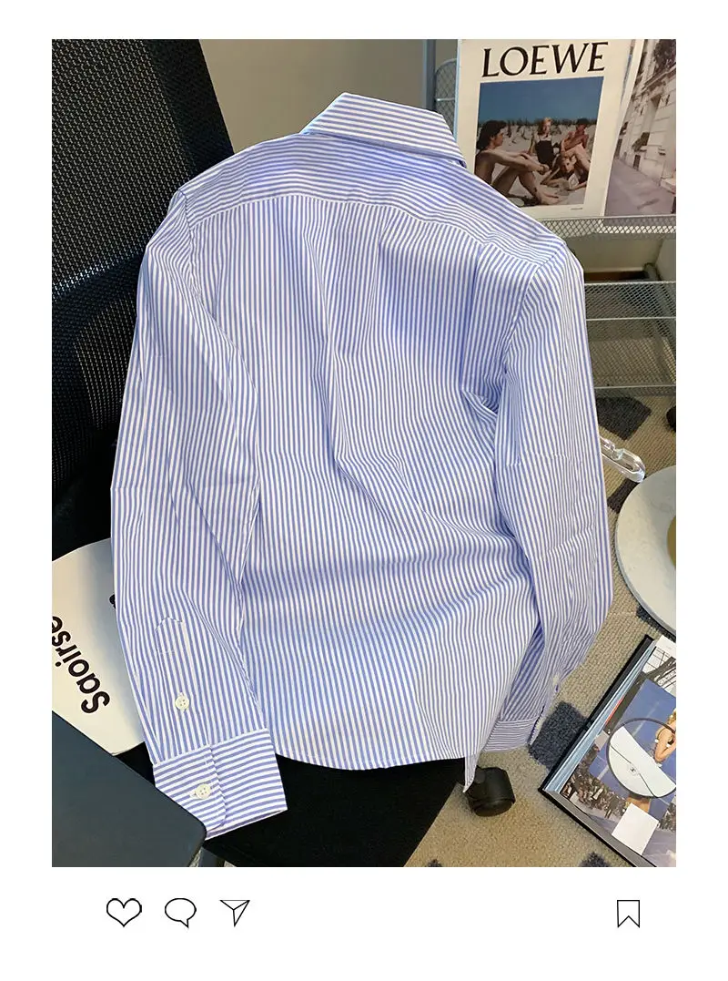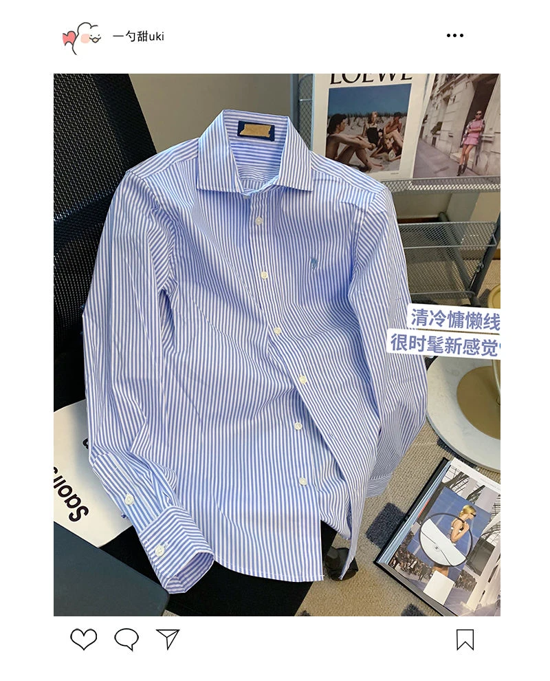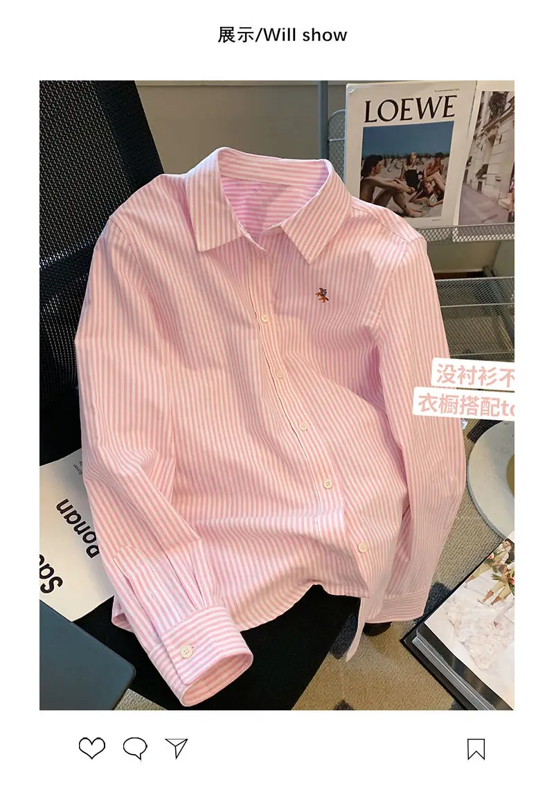 Camicia a bottone con collo a Polo a righe top manica lunga allentata camicetta High Street All-match moda Casual primavera nuovo abbigliamento donna