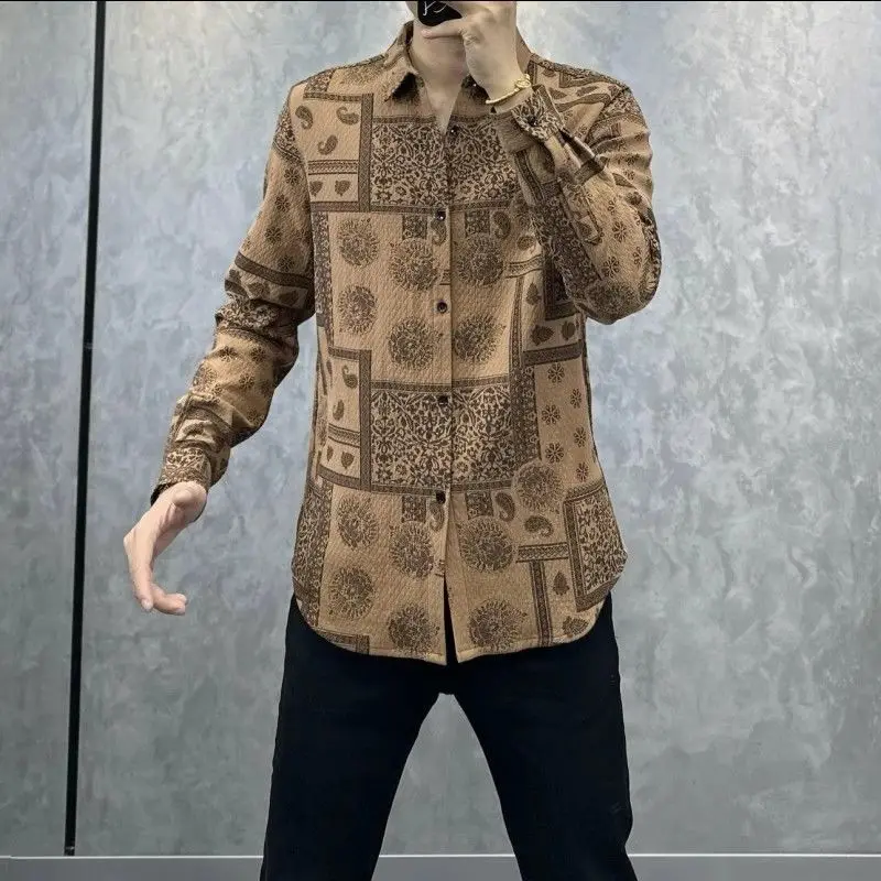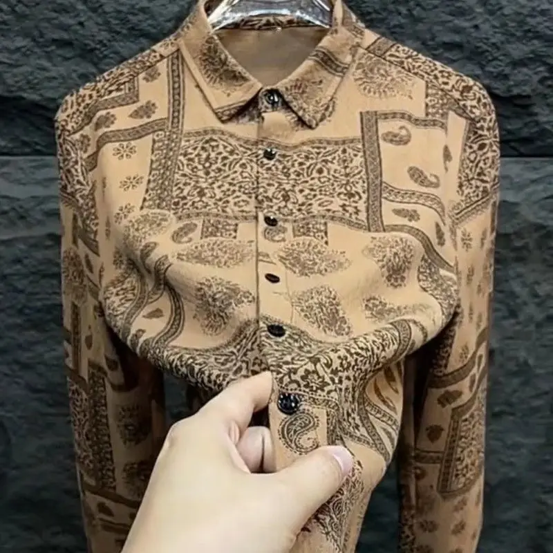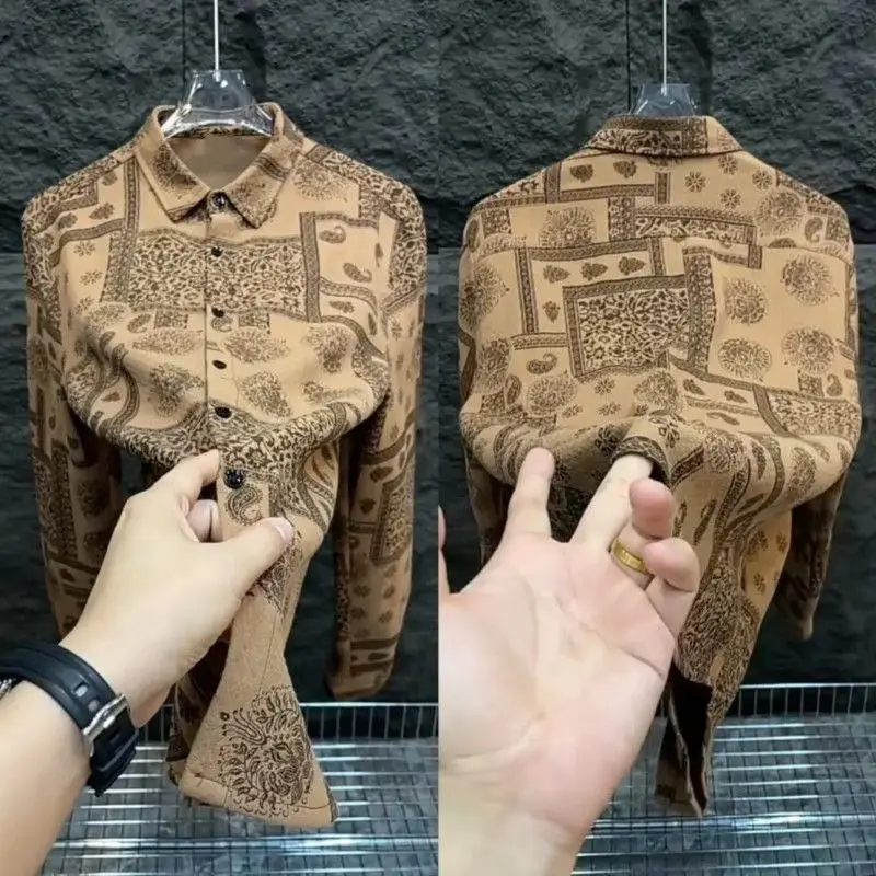 Camicia a maniche lunghe con risvolto stampato da uomo nuova per l'autunno inverno Alla moda e versatile con camicia casual abbottonata in vari colori 1Camicia a maniche lunghe con risvolto stampato da uomo nuova per l’autunno inverno Alla moda e versatile con camicia casual abbottonata in vari colori