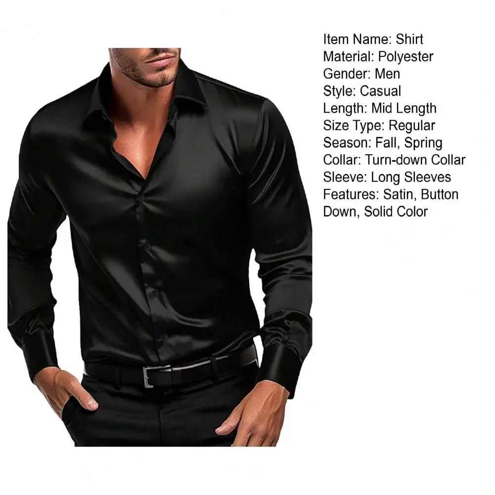 Camicia da uomo autunno primavera abbottonata colletto rovesciato cardigan maniche lunghe raso slim fit media lunghezza casual abbigliamento quotidiano ufficio business top