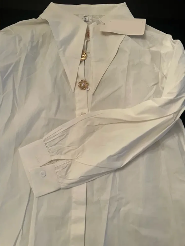 Camicia a maniche lunghe moda primaverile Colletto a punta Camicetta da donna da ufficio Camicie da donna da ufficio Colletto rovesciato Abbigliamento ampio 15630 1Camicia a maniche lunghe moda primaverile Colletto a punta Camicetta da donna da ufficio Camicie da donna da ufficio Colletto rovesciato Abbigliamento ampio 15630