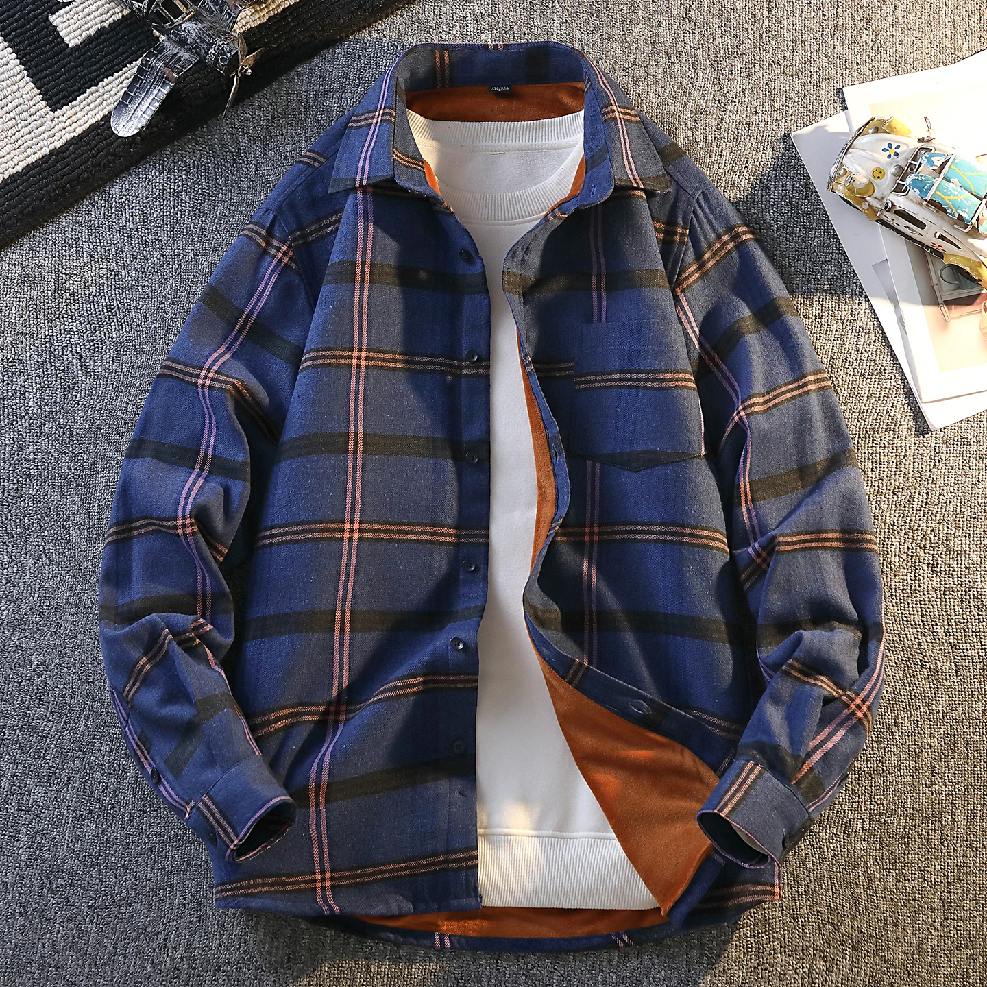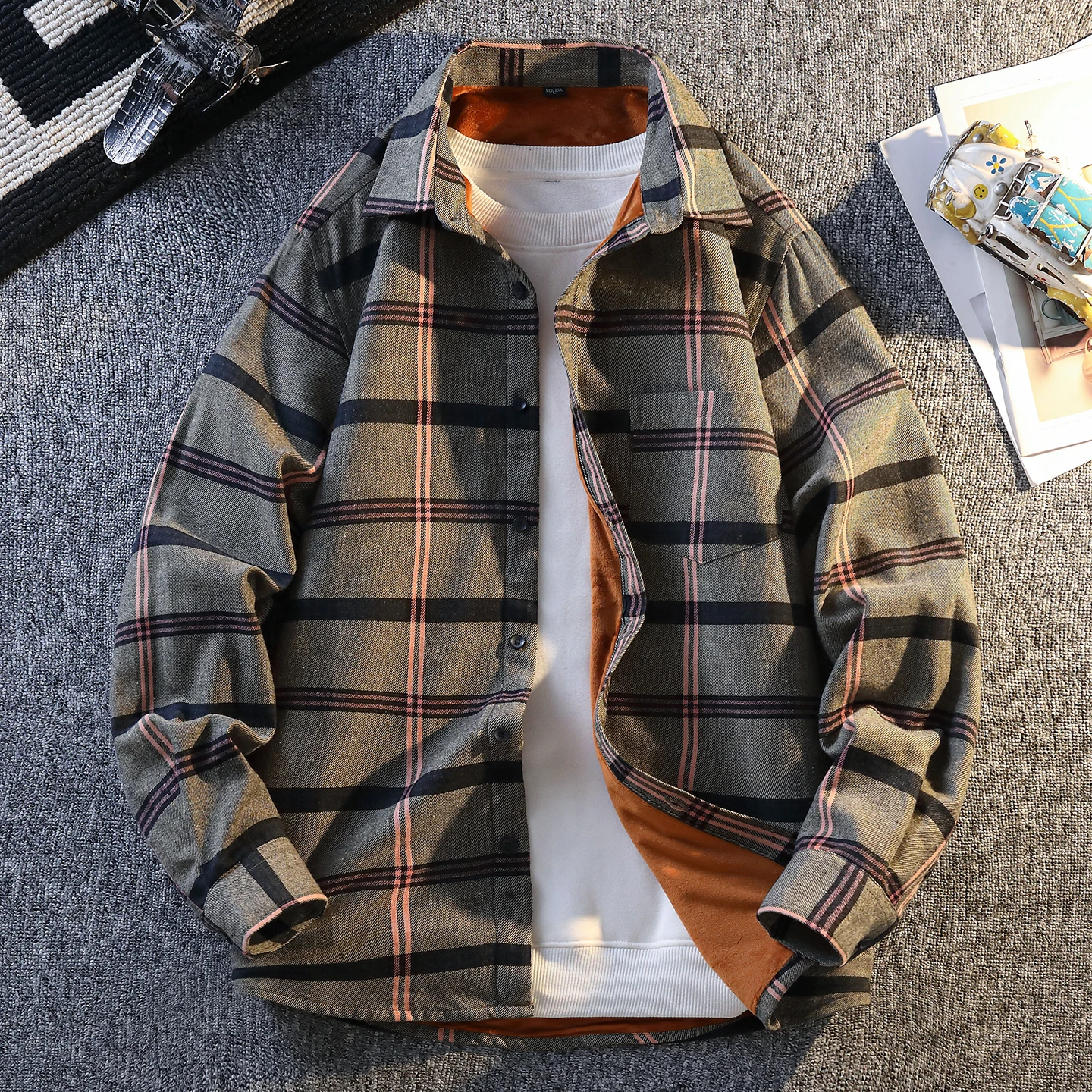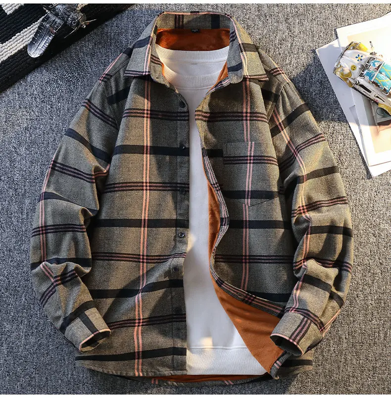 Camicia a quadretti autunnale da uomo Giacca oversize casual a maniche lunghe stile coreano con camicia scozzese calda e alla moda da uomo 1Camicia a quadretti autunnale da uomo Giacca oversize casual a maniche lunghe stile coreano con camicia scozzese calda e alla moda da uomo