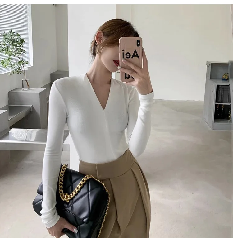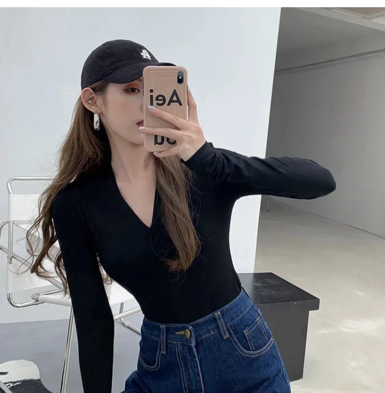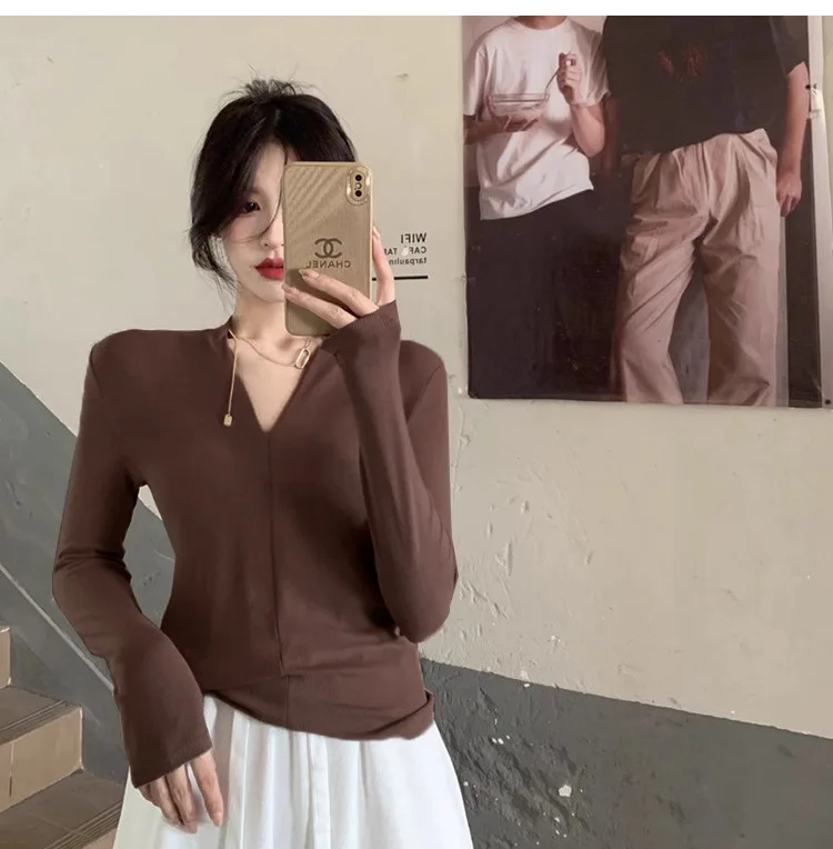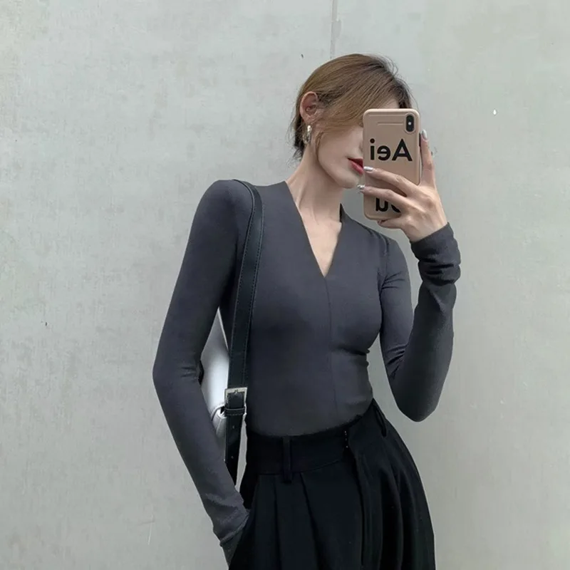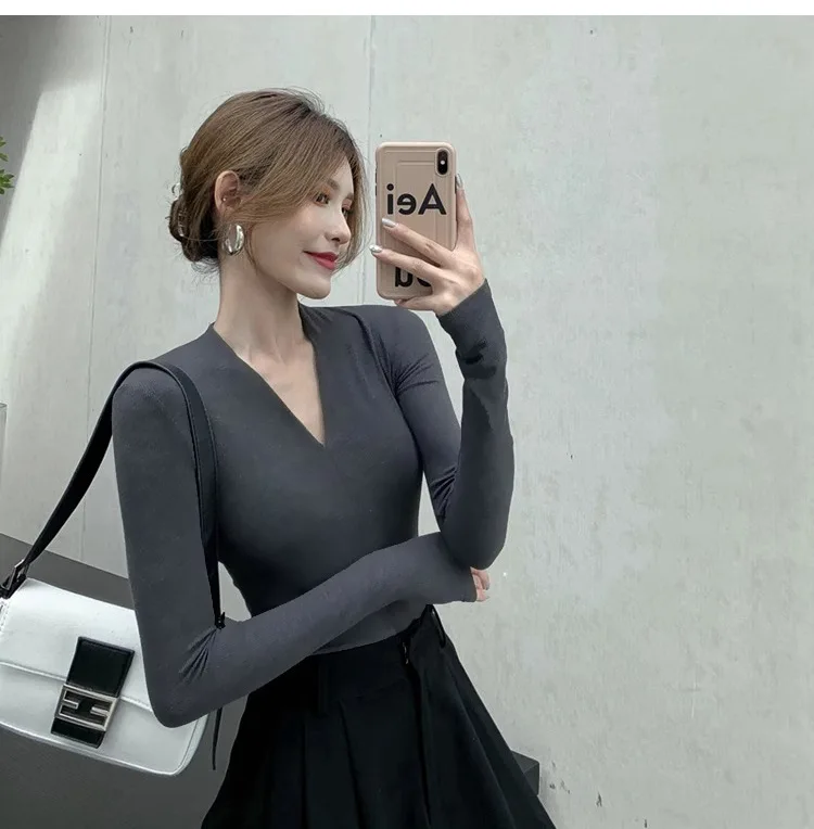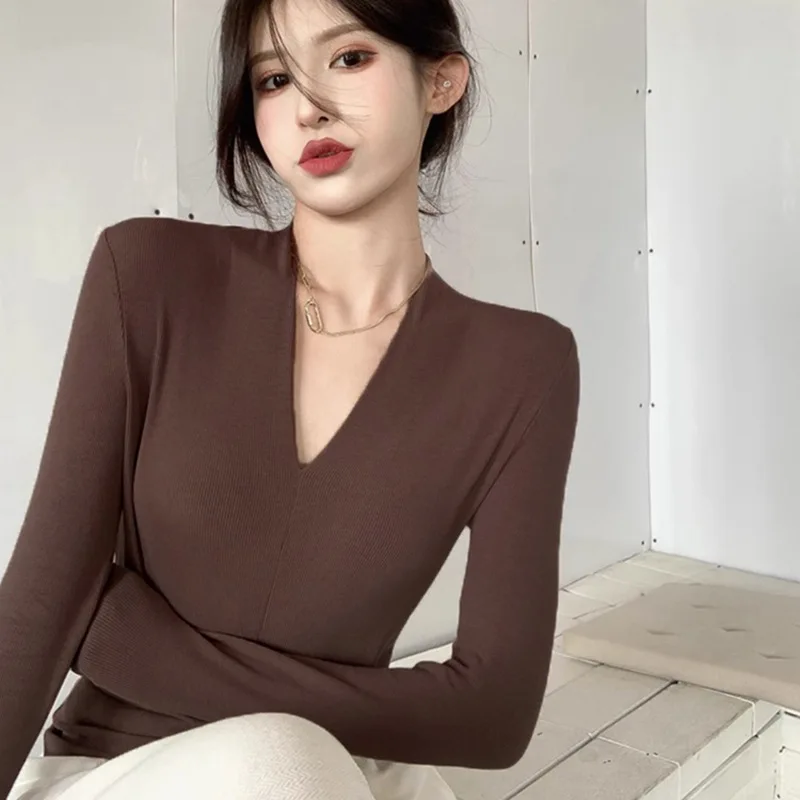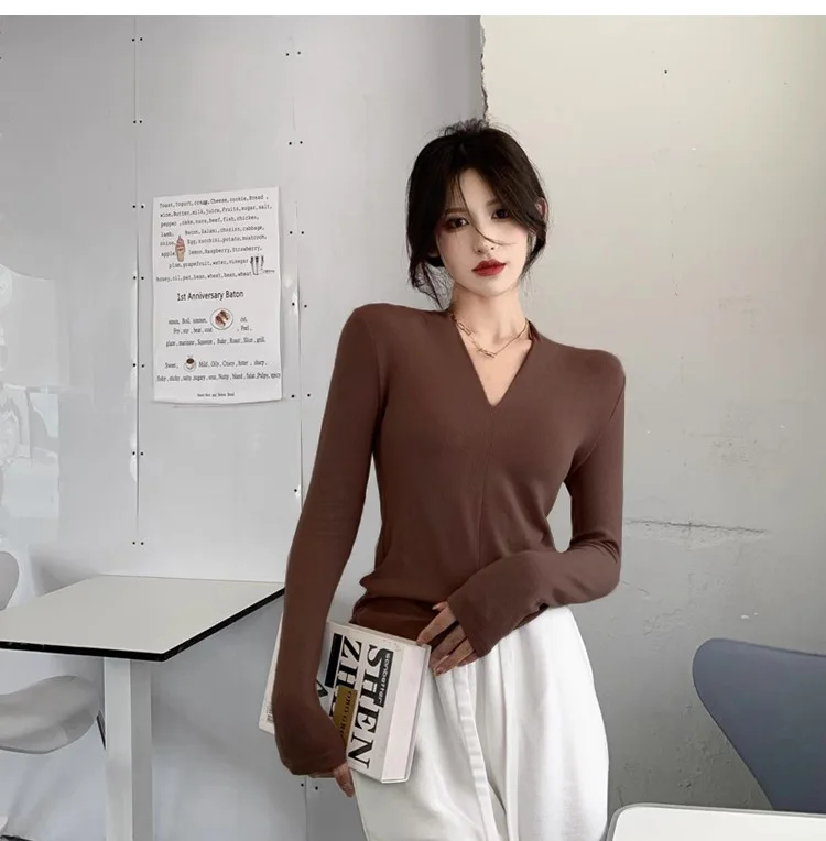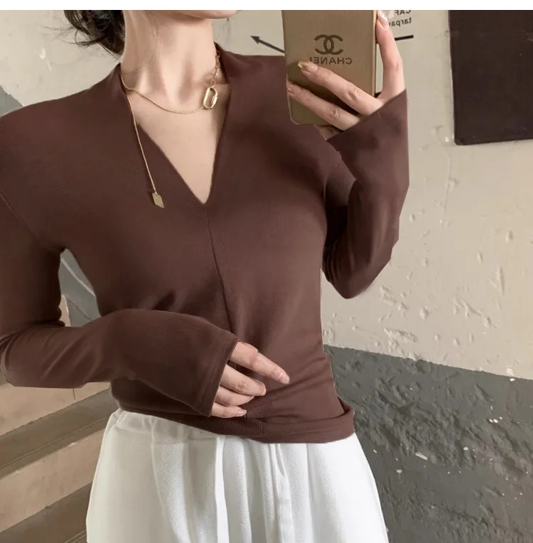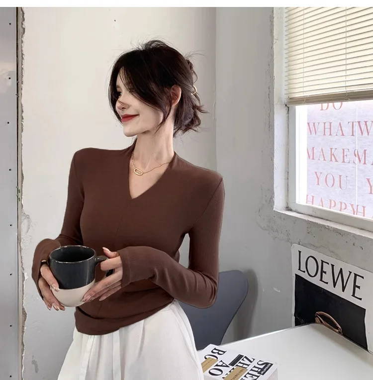 Camicia base a maniche lunghe con spalla anteriore per abbigliamento interno in velluto tedesco moda americana per donna T-shirt slim con scollo a V autunno inverno 2025Pensa ad un Regalo Unico e Utile per le Persone a te Vicine!! Regala un buono a partire da € 10,00 a € 300,00