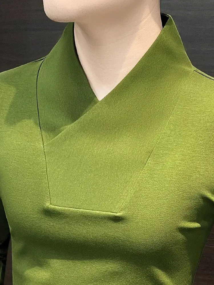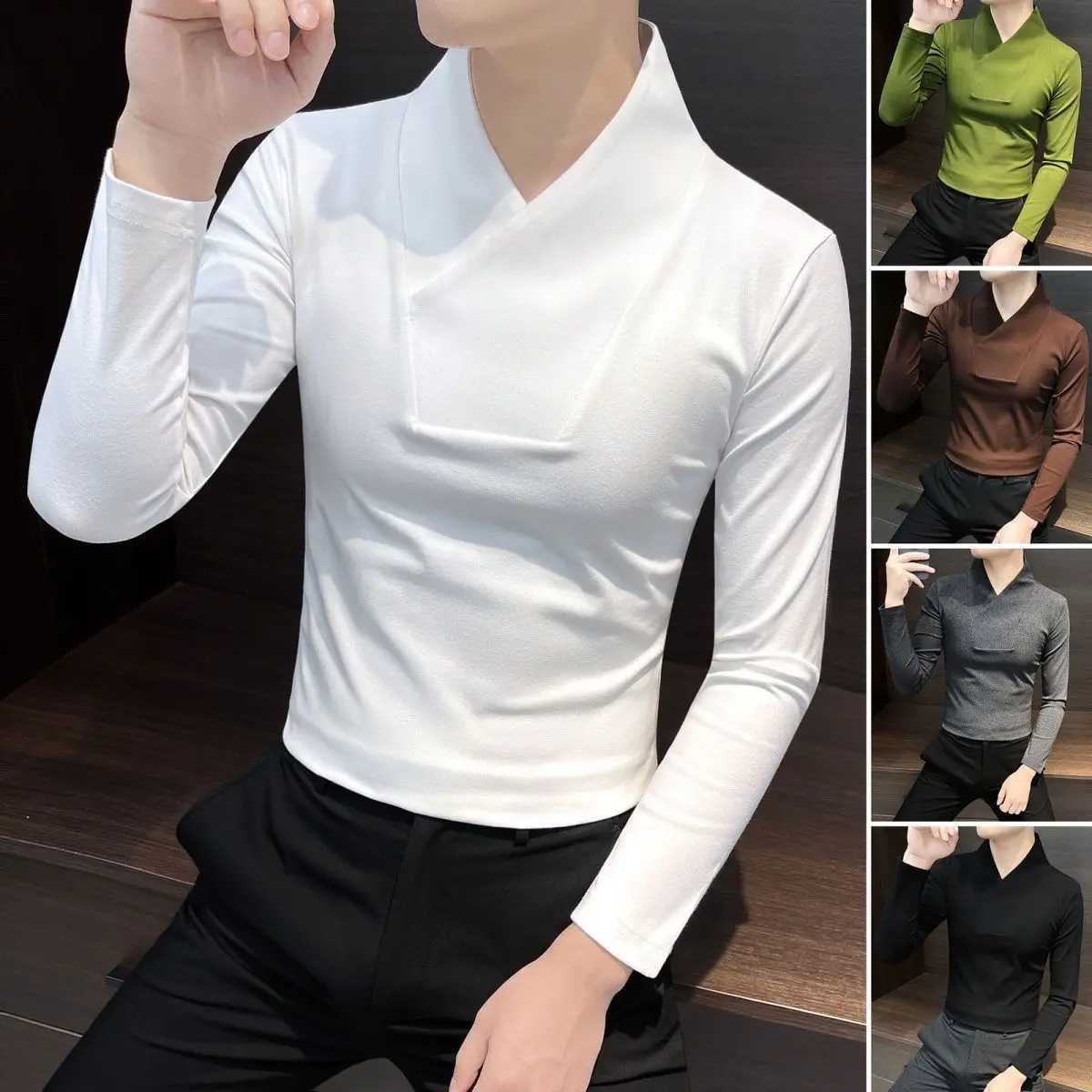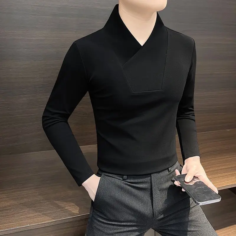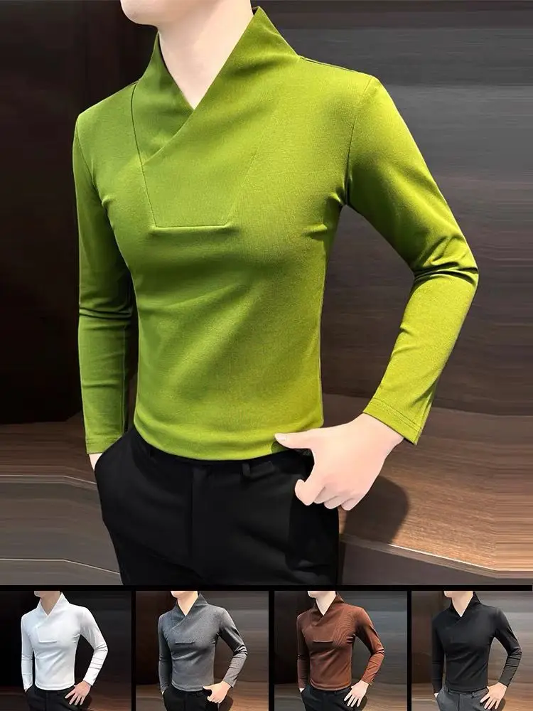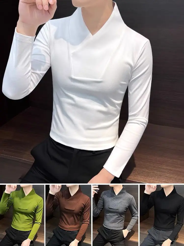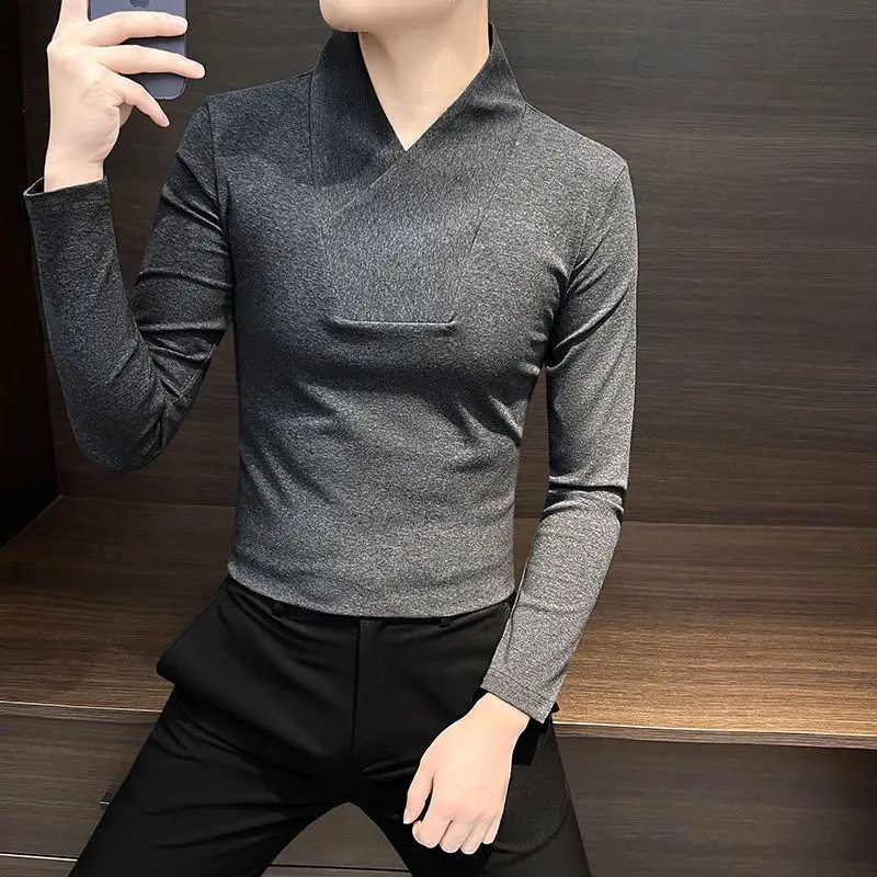 Camicia base con scollo a V Camicia base interna da uomo T-shirt attillata da uomo invernale a maniche lunghe