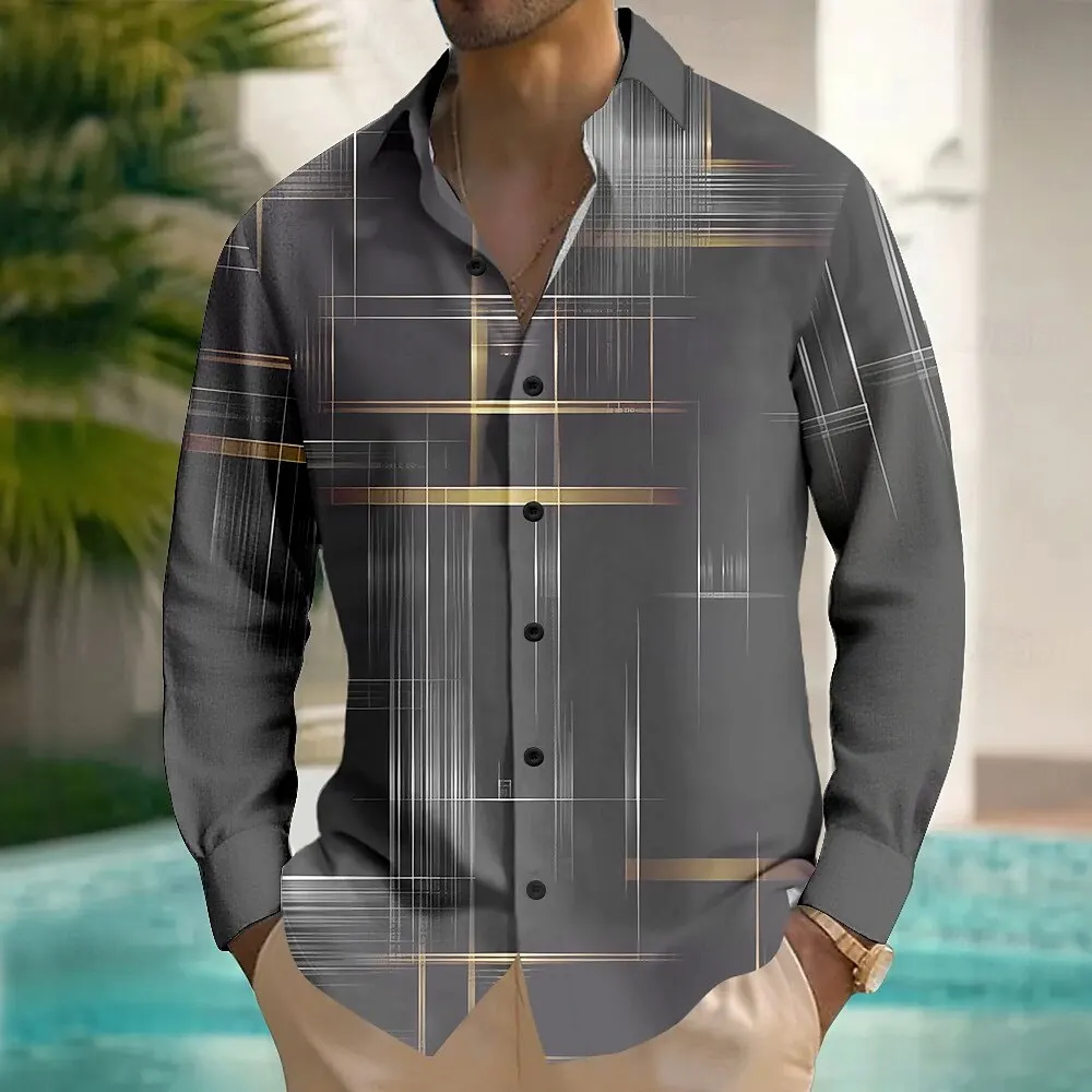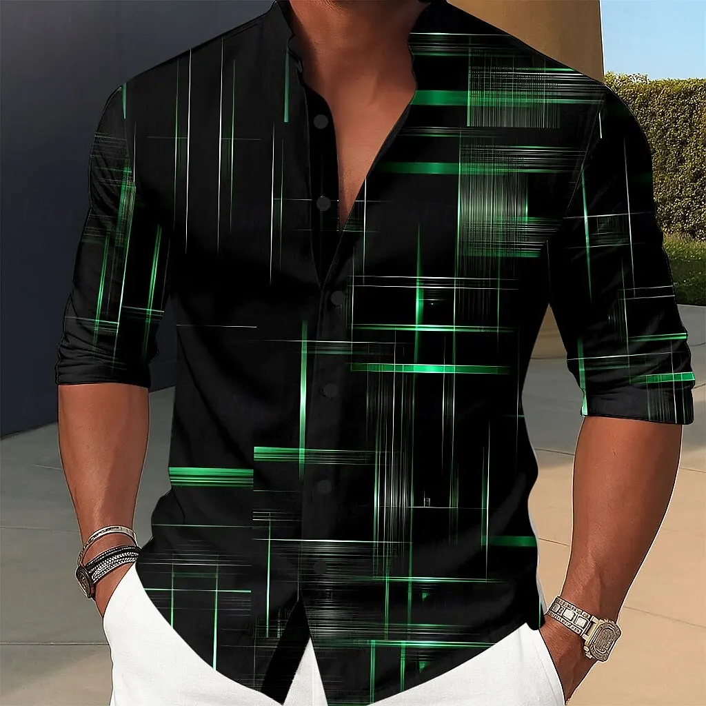 Camicia casual da uomo Camicia con linea sfumata geometrica Camicia con bottoni Manica lunga Moda casual Risvolto Camicia con stampa 3D Estate Autunno 1Camicia casual da uomo Camicia con linea sfumata geometrica Camicia con bottoni Manica lunga Moda casual Risvolto Camicia con stampa 3D Estate Autunno