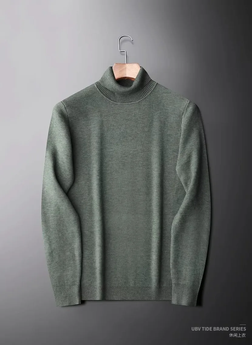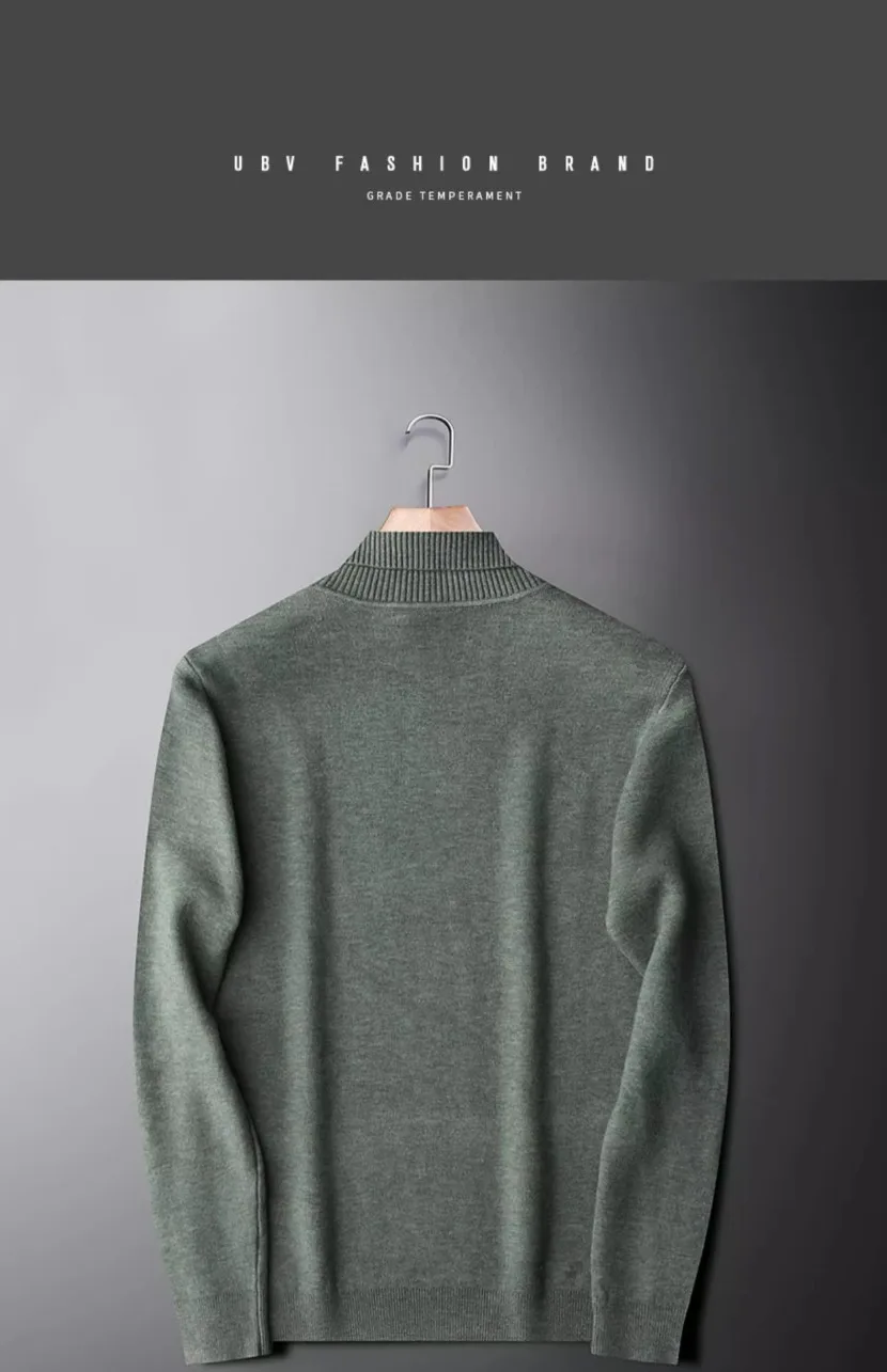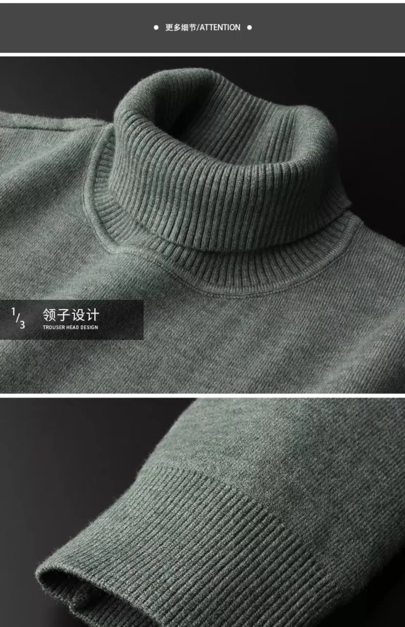 Camicia con fondo in pile Maglione a collo alto da uomo Autunno e inverno Maglione lavorato a maglia caldo ispessito con risvolto casual aderente