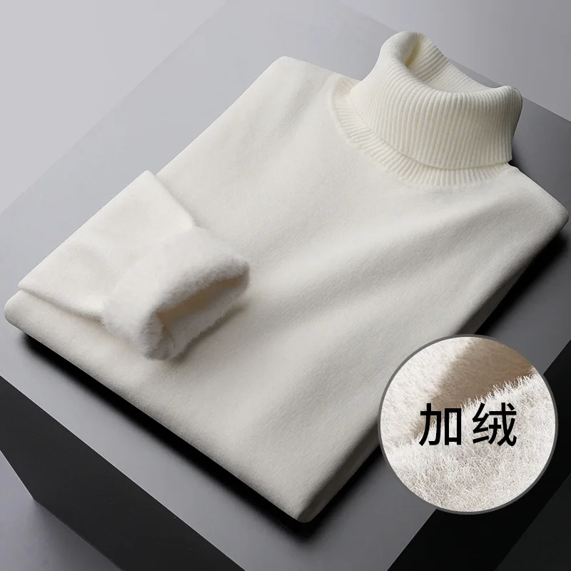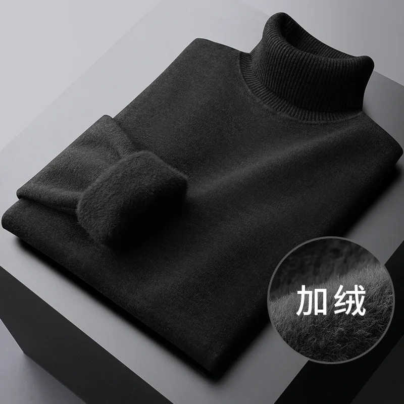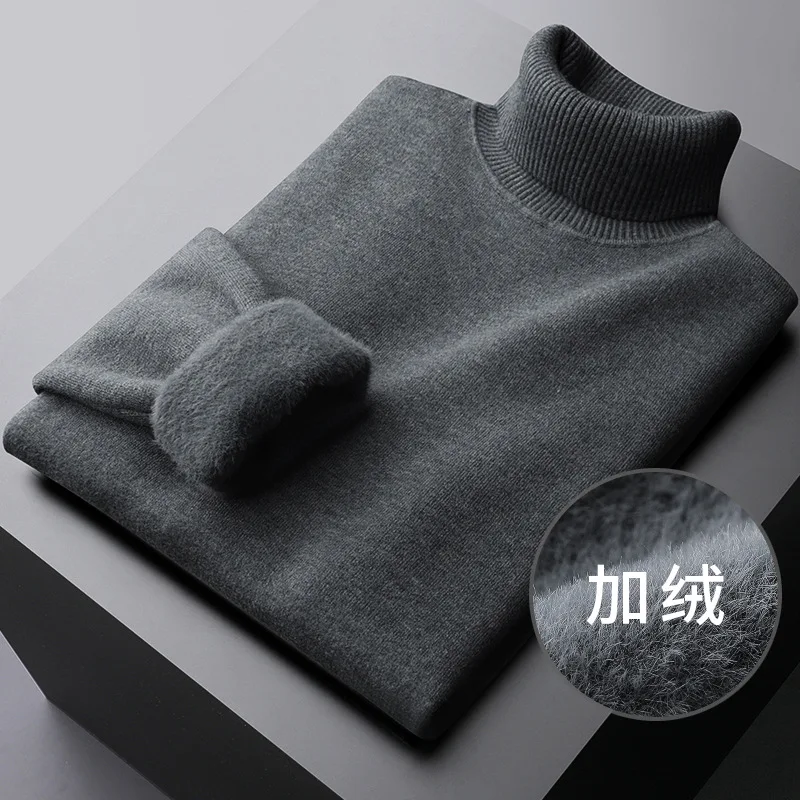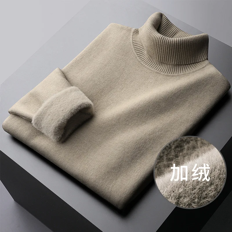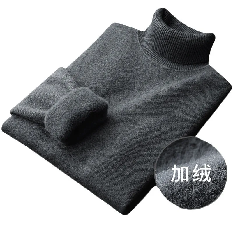 Camicia con fondo in pile Maglione a collo alto da uomo Autunno e inverno Maglione lavorato a maglia caldo ispessito con risvolto casual aderente
