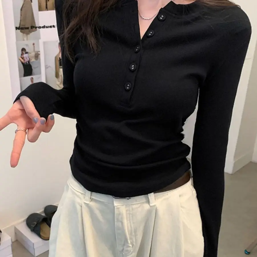 Camicia con fondo sexy sottile e semplice con bottoni Primavera Autunno Nuova maglietta a maniche lunghe moda solida Top Abiti casual da donna coreani