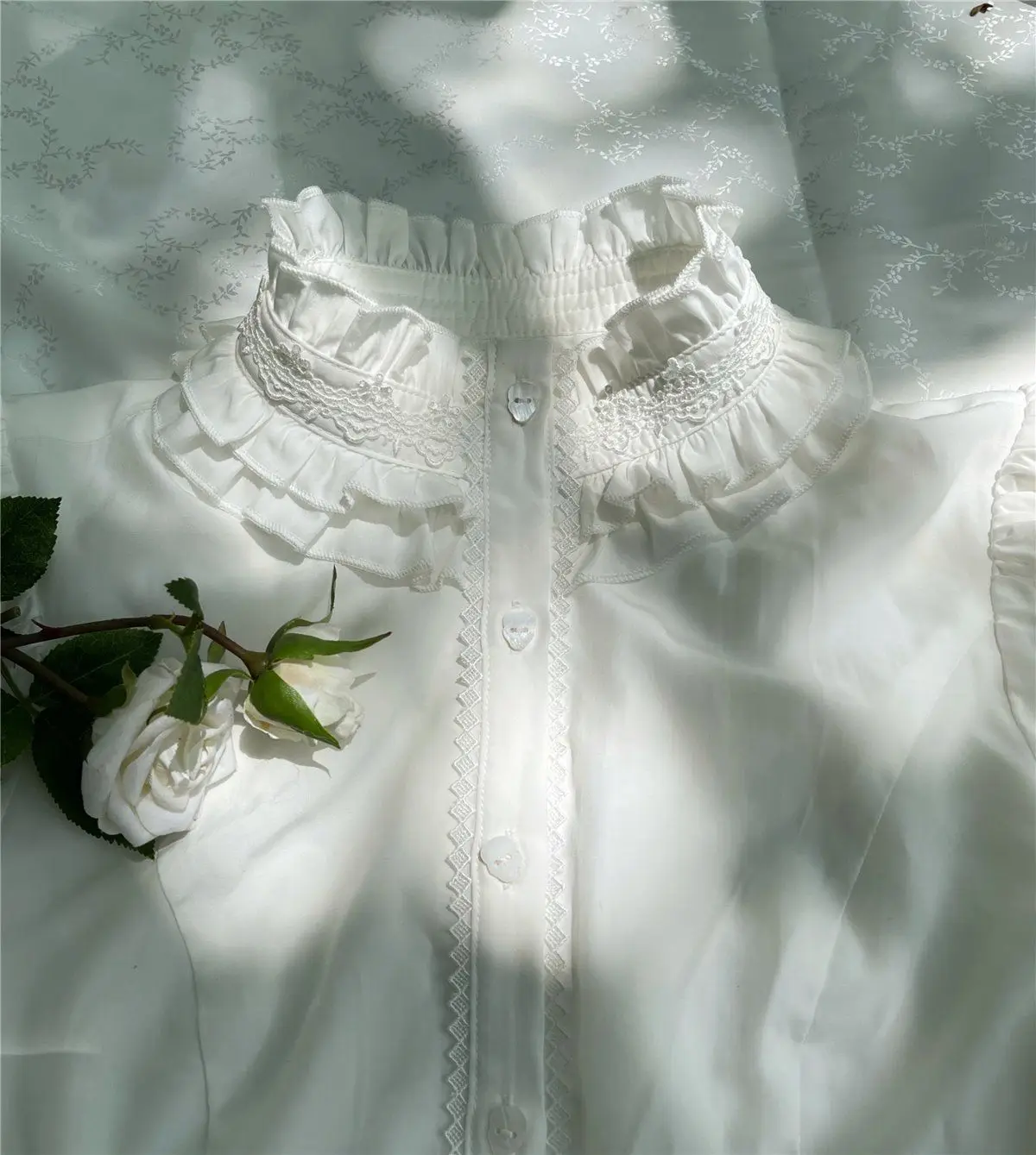 Camicia da donna Lolita Splendido pizzo all’interno Top Y2k Goth Horn Camicie a maniche lunghe Primavera Nuova camicetta bianca e nera Camisas De Mujer