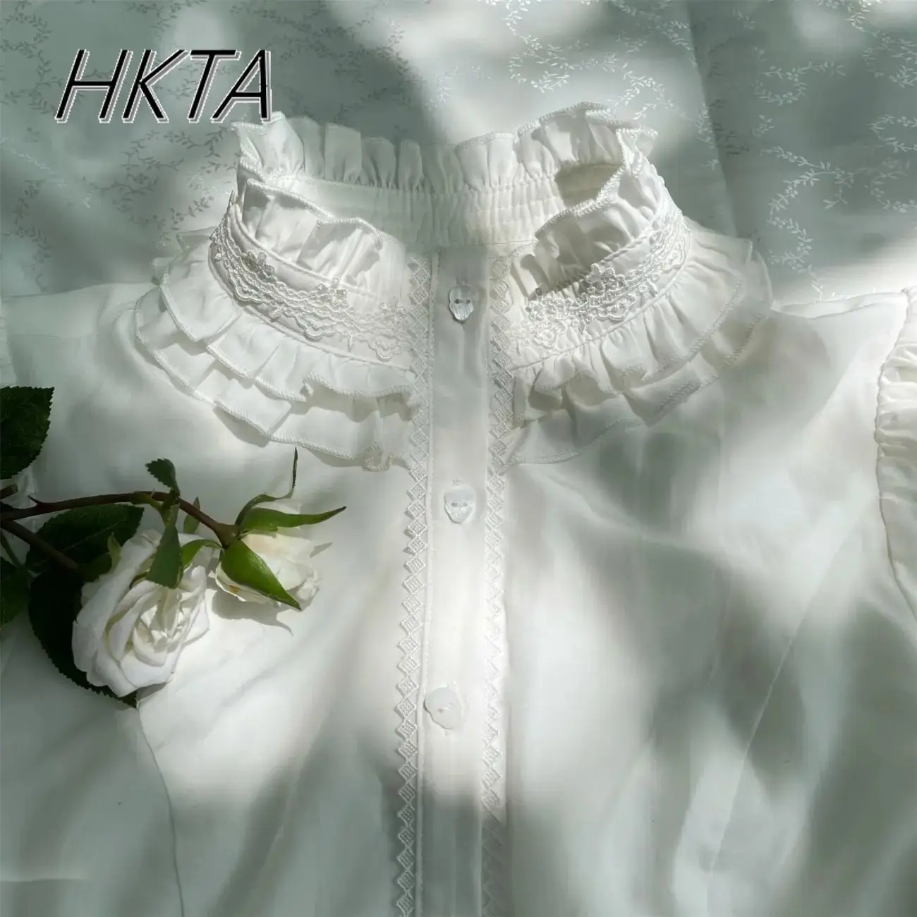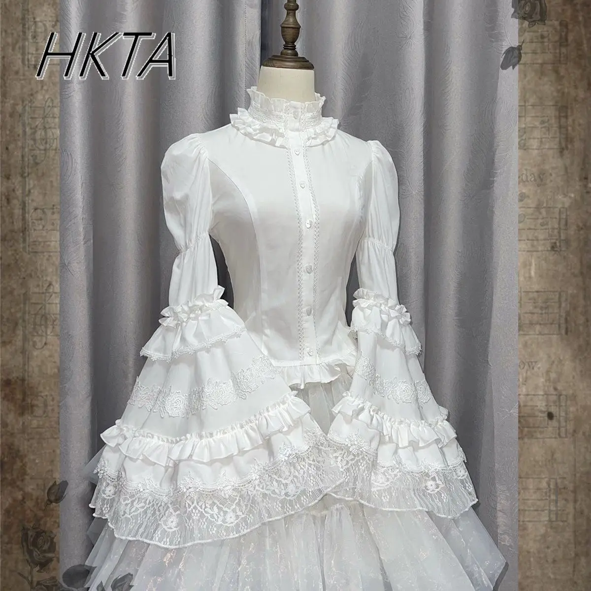 Camicia da donna Lolita Splendido pizzo all’interno Top Y2k Goth Horn Camicie a maniche lunghe Primavera Nuova camicetta bianca e nera Camisas De Mujer