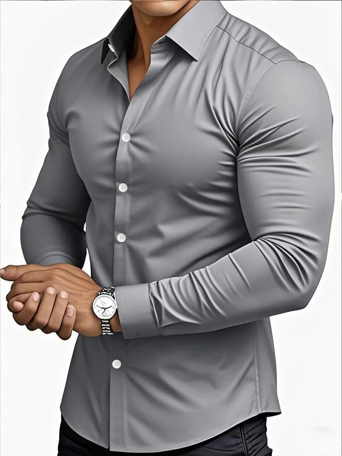 Camicia da lavoro casual a maniche lunghe tinta unita da uomo per la primavera e l’autunno