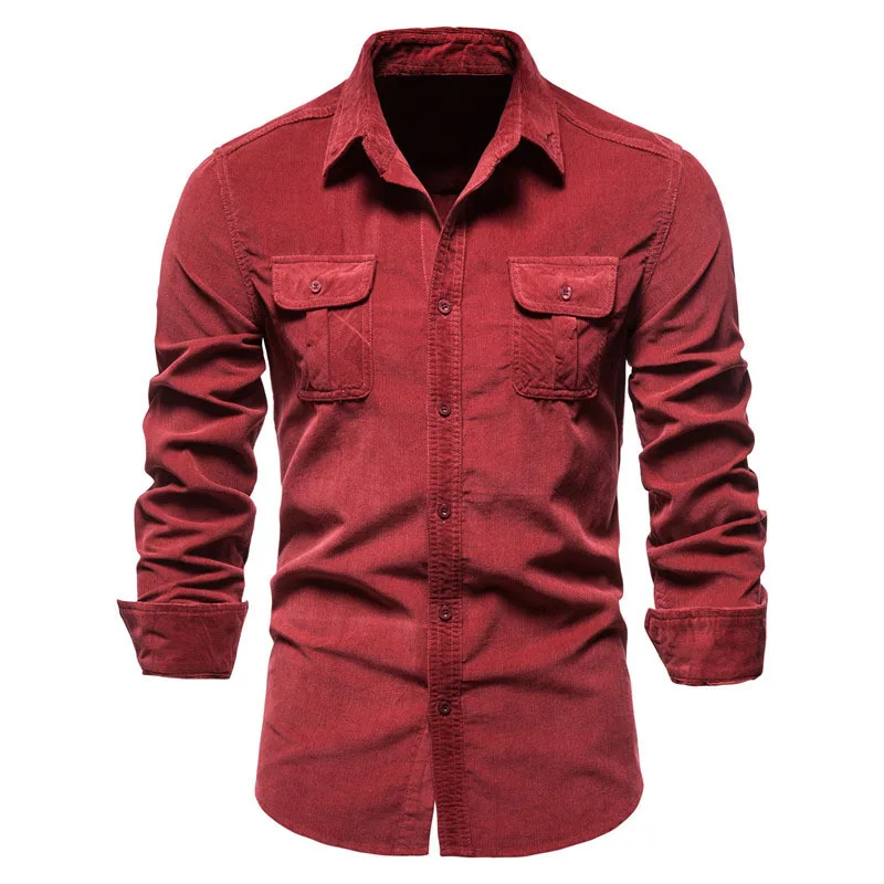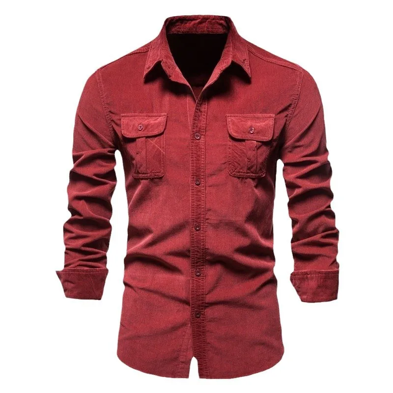 Camicia da lavoro da uomo in velluto a coste giapponese basic in cotone autunnale da uomo slim casual a maniche lunghe