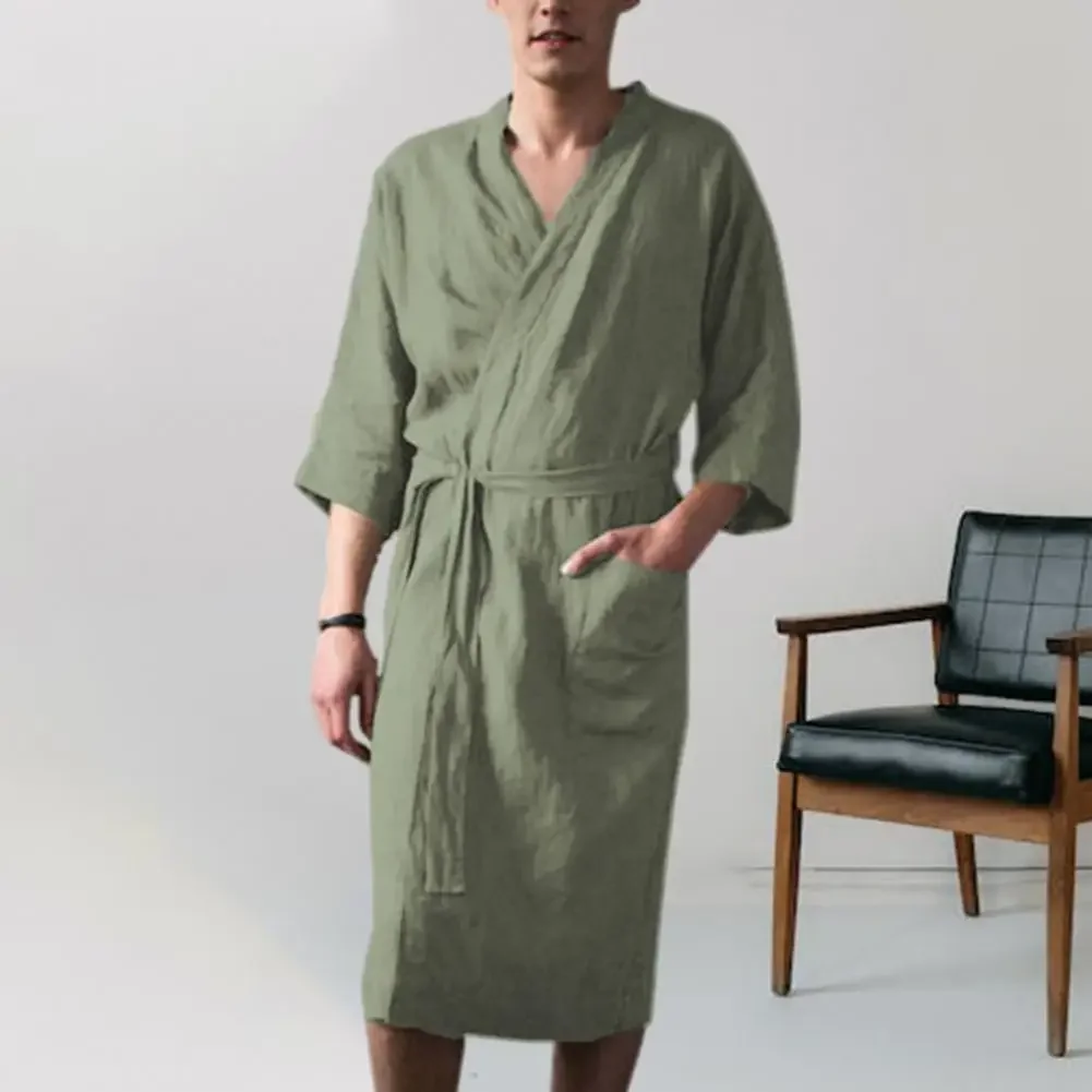 Camicia da notte da uomo in cotone e lino Vestaglie Nuova primavera autunno Kimono giapponese Camicia da notte Homewear Bagno Abiti al vapore Accappatoio