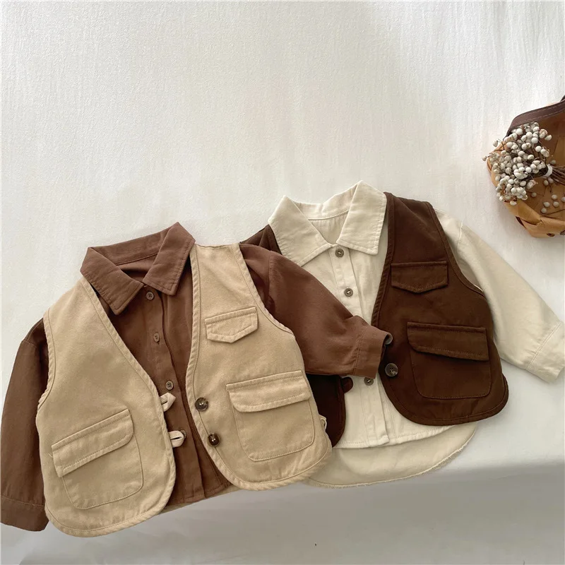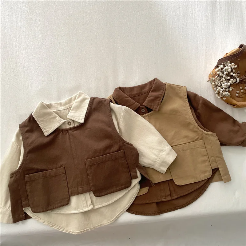 Camicia da ragazzo Autunno Nuovo articolo Ragazze coreane Primavera e autunno Versatile camicia casual per bambini Giacca da esterno