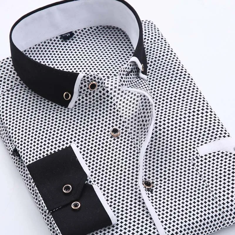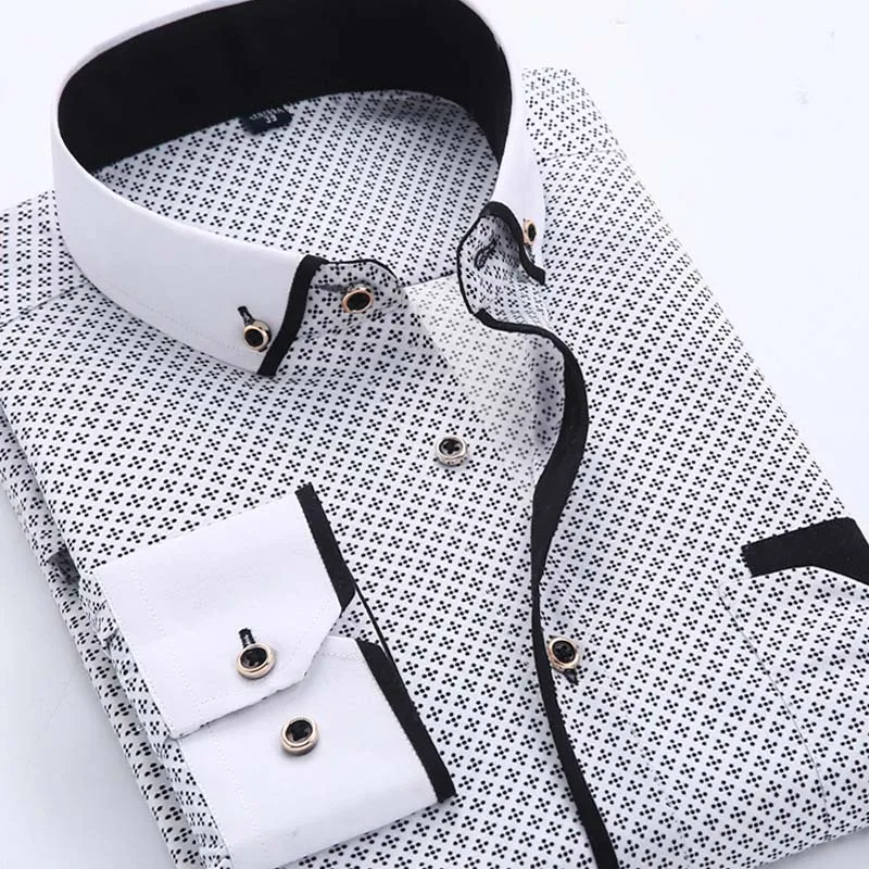 Camicia da uomo abbottonata floreale marca 2024 camicie a maniche lunghe da uomo di alta qualità camicie eleganti da uomo nere slim fit casual