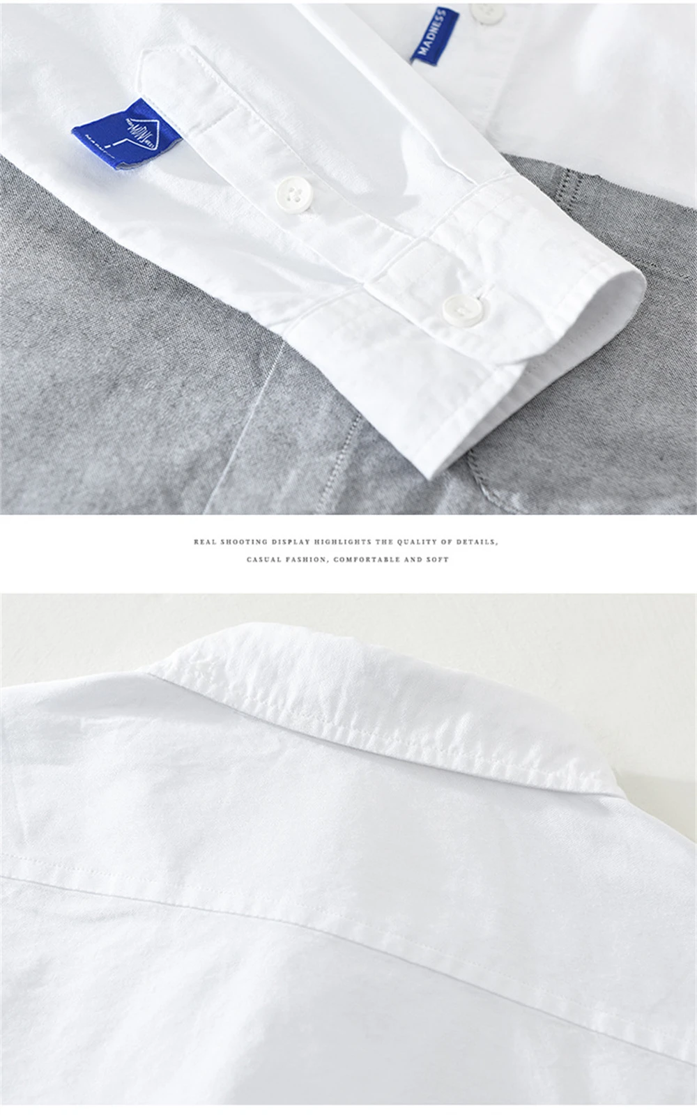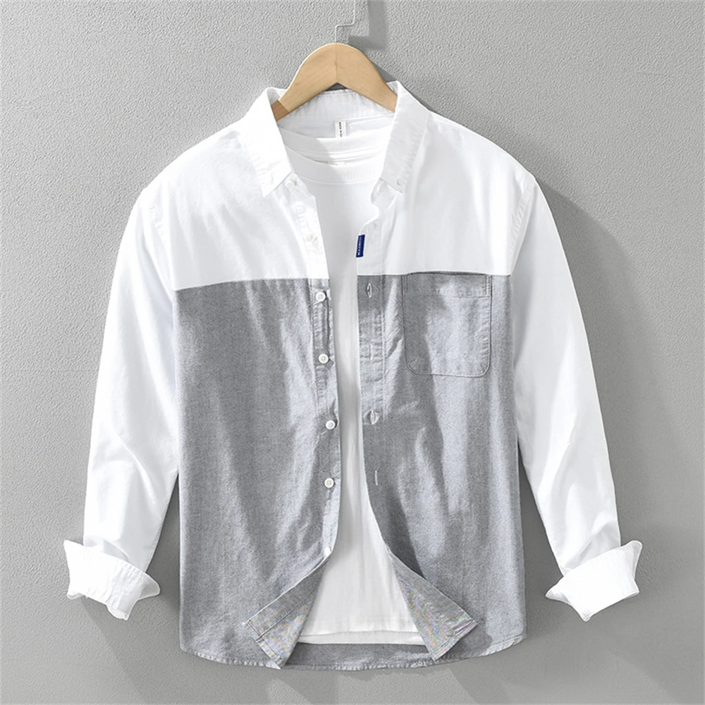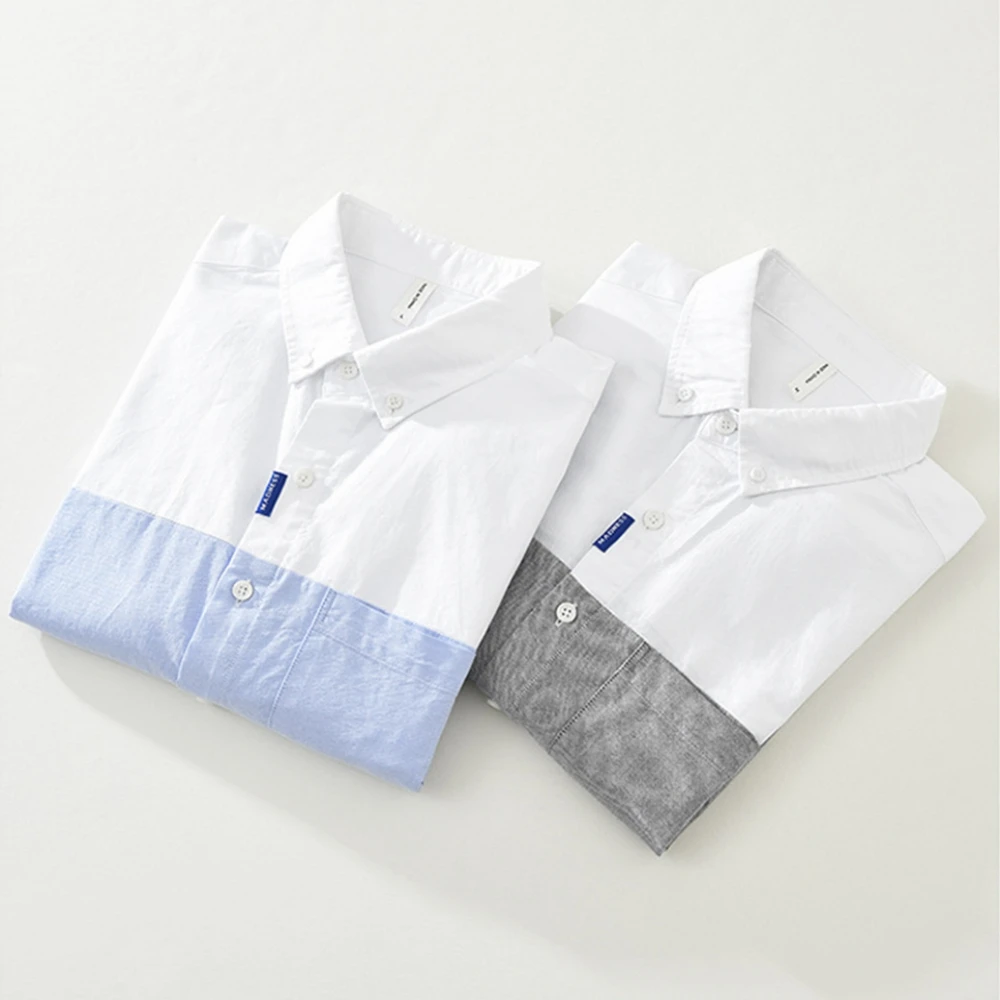 Camicia da uomo autunno splicing a maniche lunghe in cotone stile giapponese Camicie Oxford da uomo Top casual Abbigliamento da uomo primaverile 7366 #