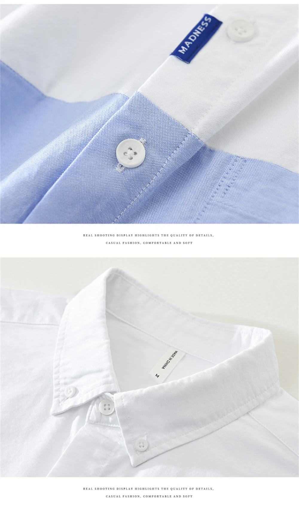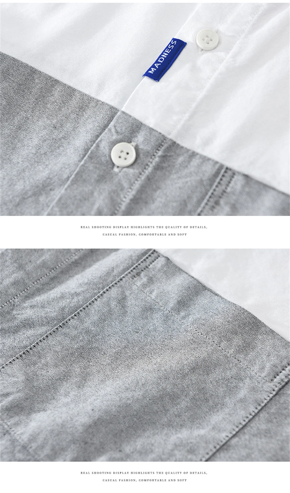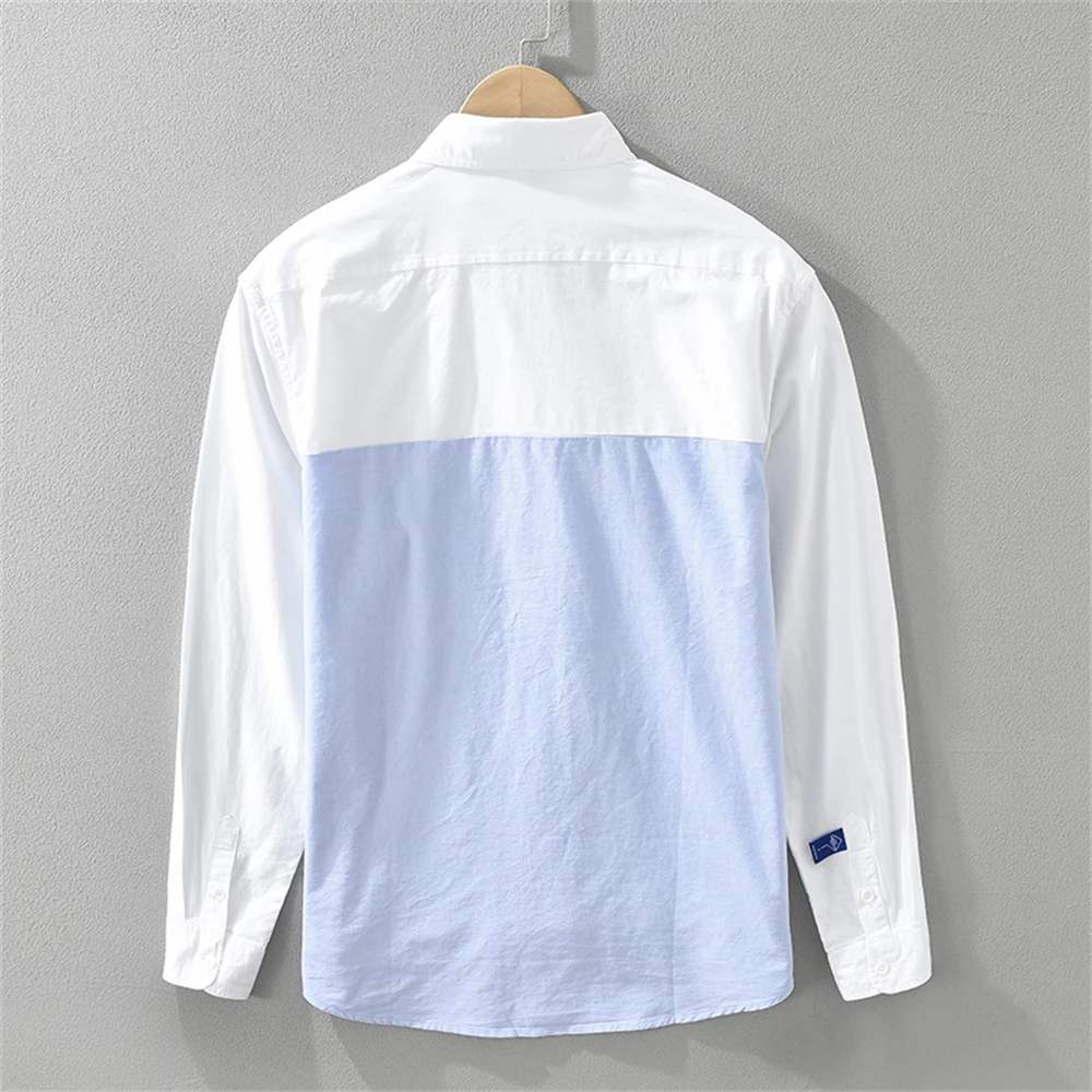 Camicia da uomo autunno splicing a maniche lunghe in cotone stile giapponese Camicie Oxford da uomo Top casual Abbigliamento da uomo primaverile 7366 #