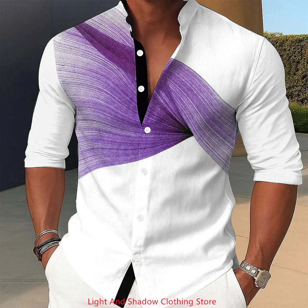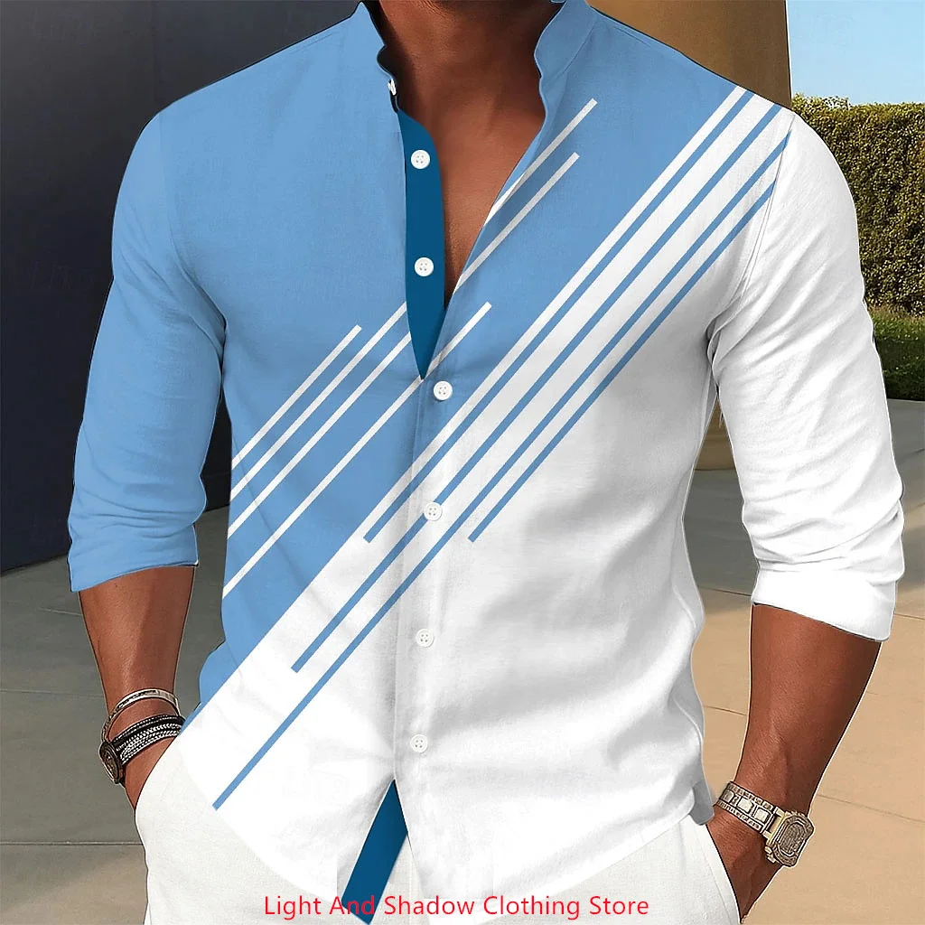 Camicia da uomo con colletto rialzato, camicia stampata geometrica, camicia monopetto, abbigliamento da uomo a maniche lunghe alla moda di strada 1Camicia da uomo con colletto rialzato, camicia stampata geometrica, camicia monopetto, abbigliamento da uomo a maniche lunghe alla moda di strada