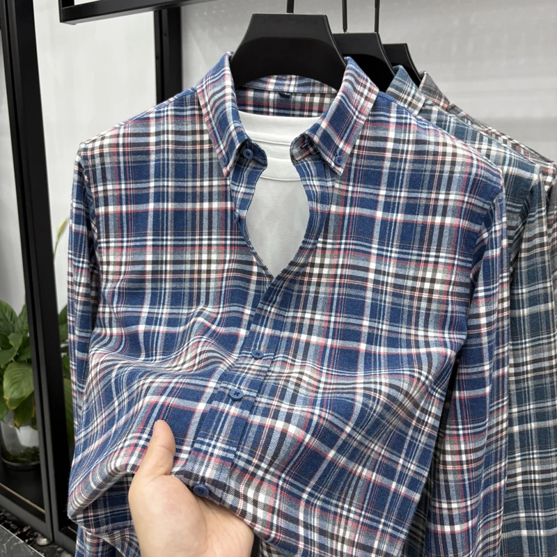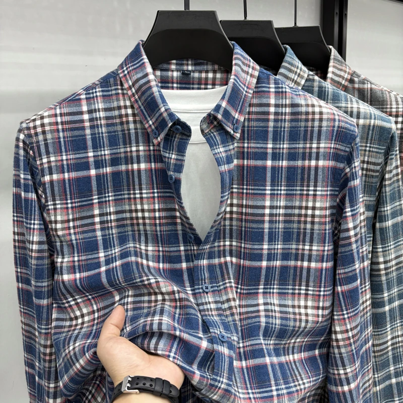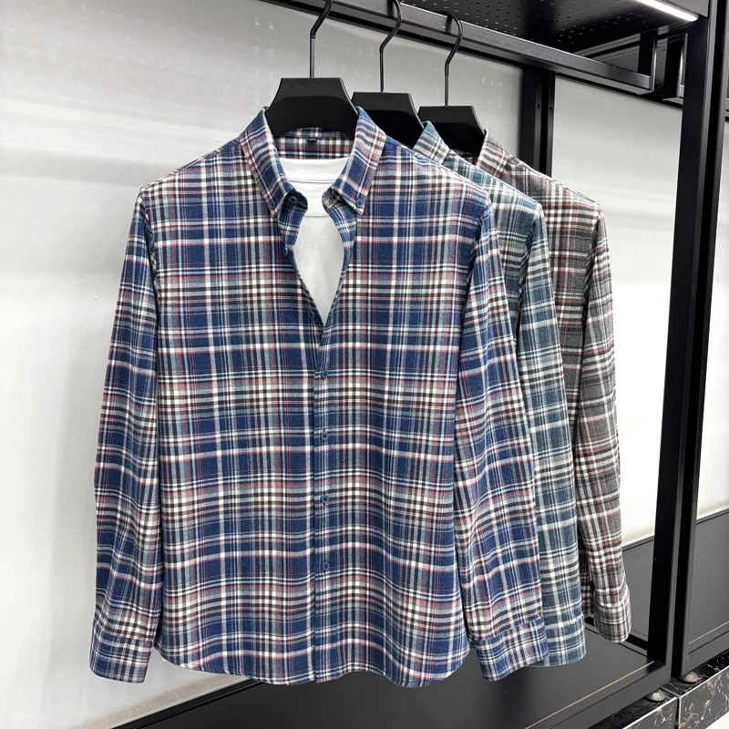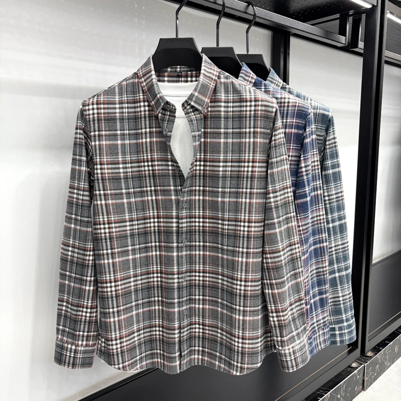 Camicia da uomo in cotone spazzolato, nuovo prodotto più venduto per l’autunno e l’inverno 2025, camicia a quadretti a maniche lunghe in cotone casual