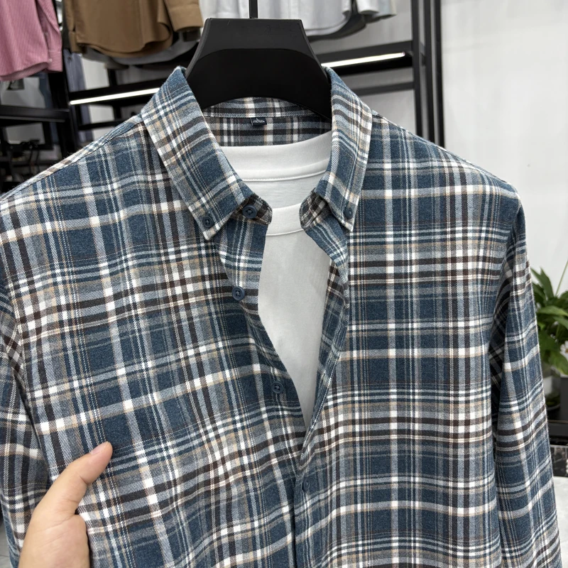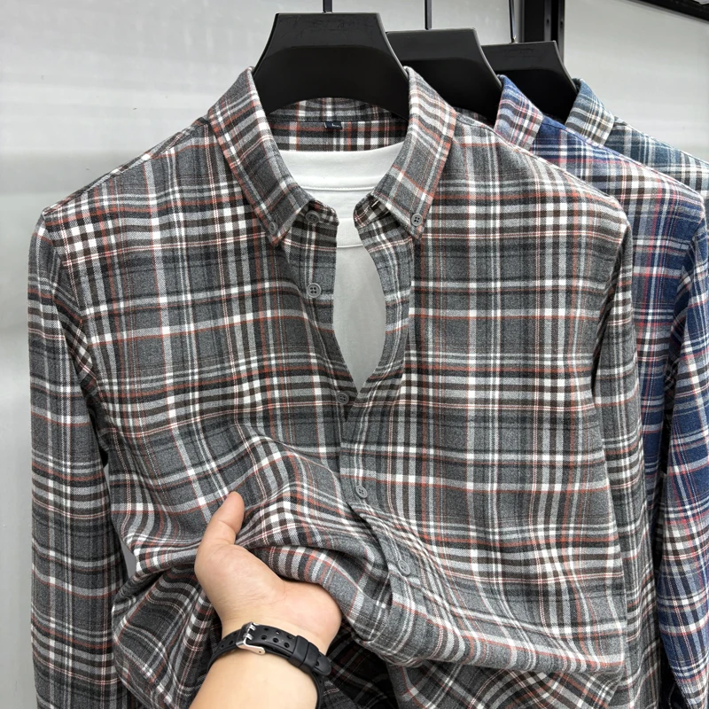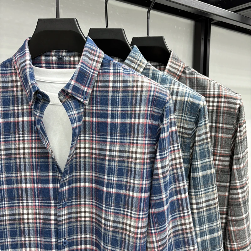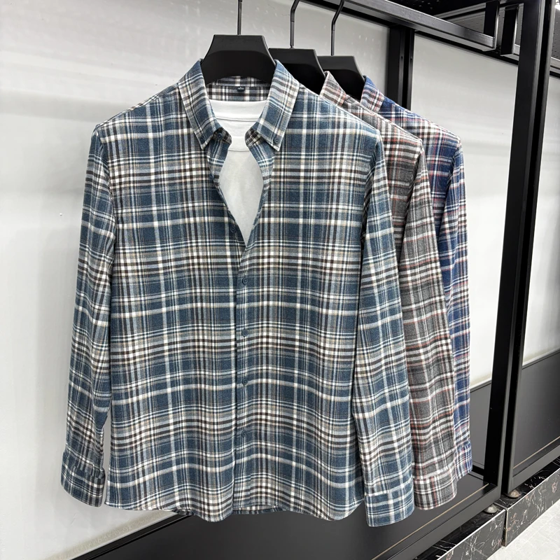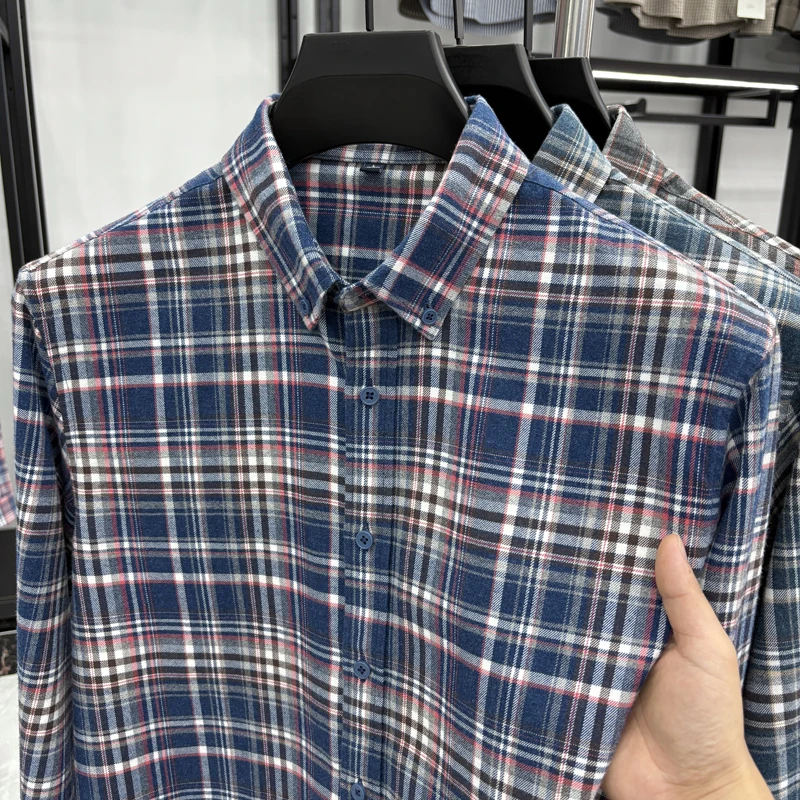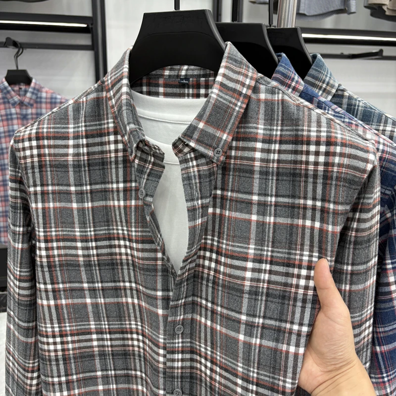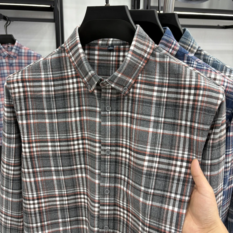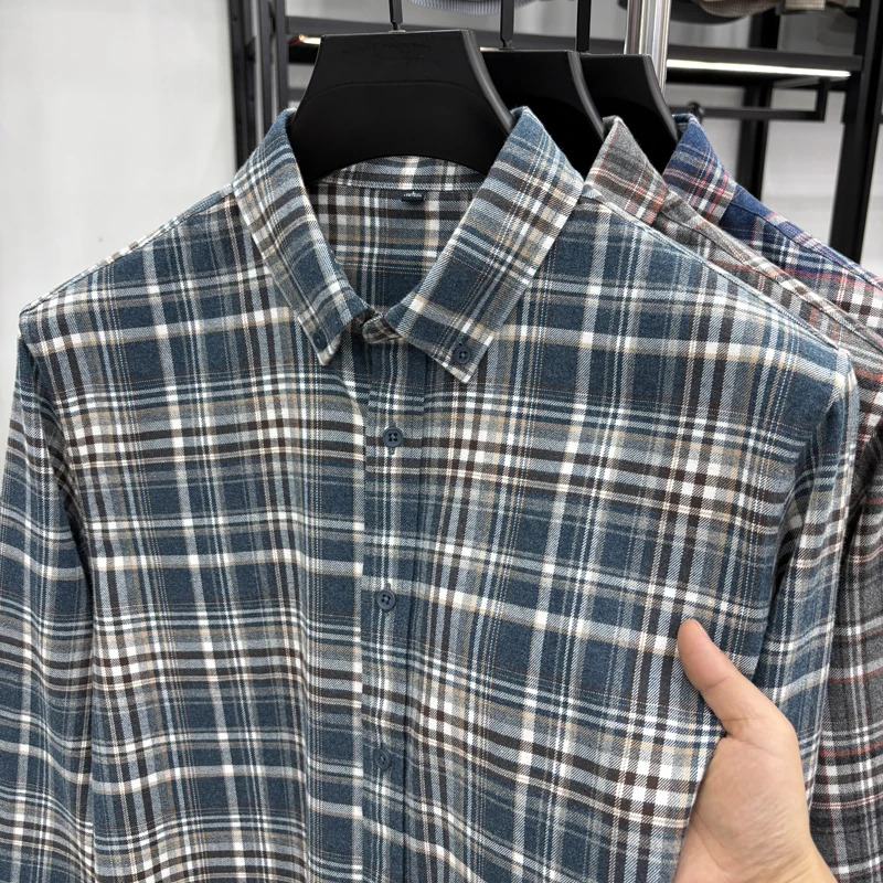 Camicia da uomo in cotone spazzolato, nuovo prodotto più venduto per l'autunno e l'inverno 2025, camicia a quadretti a maniche lunghe in cotone casual 1Camicia da uomo in cotone spazzolato, nuovo prodotto più venduto per l’autunno e l’inverno 2025, camicia a quadretti a maniche lunghe in cotone casual