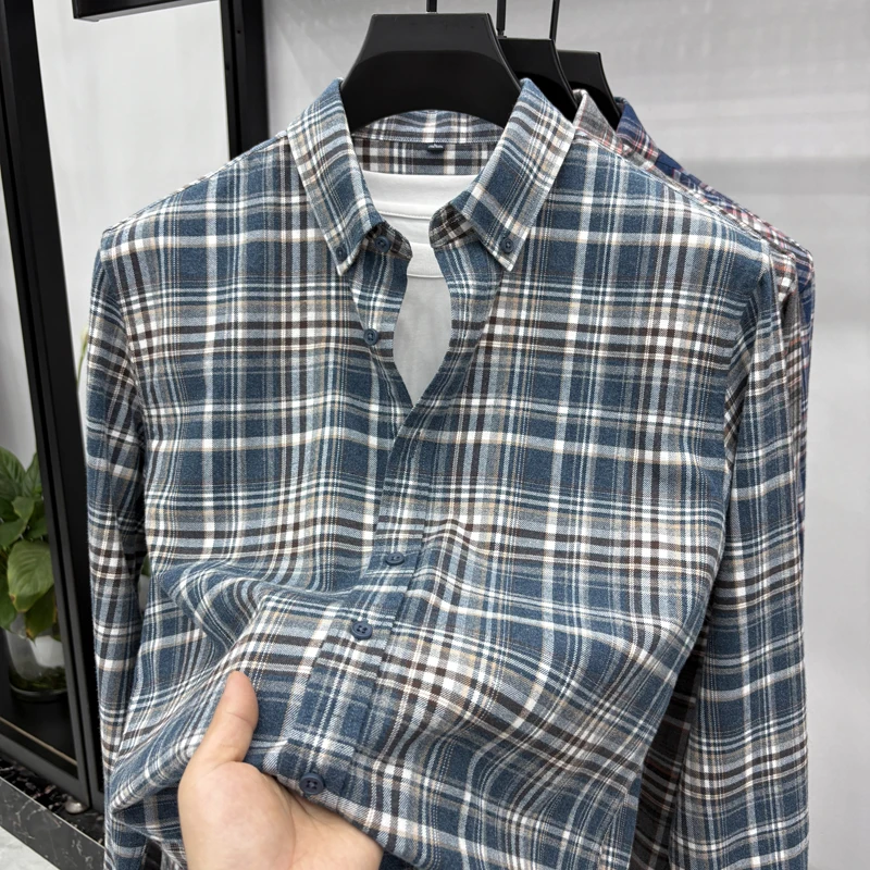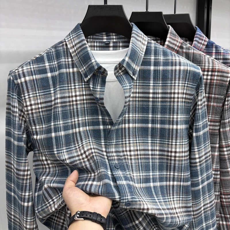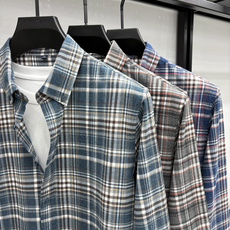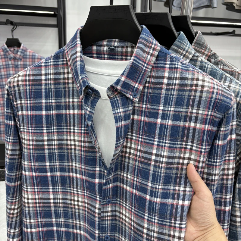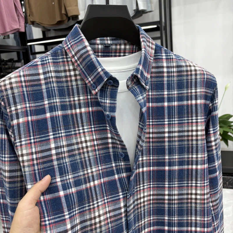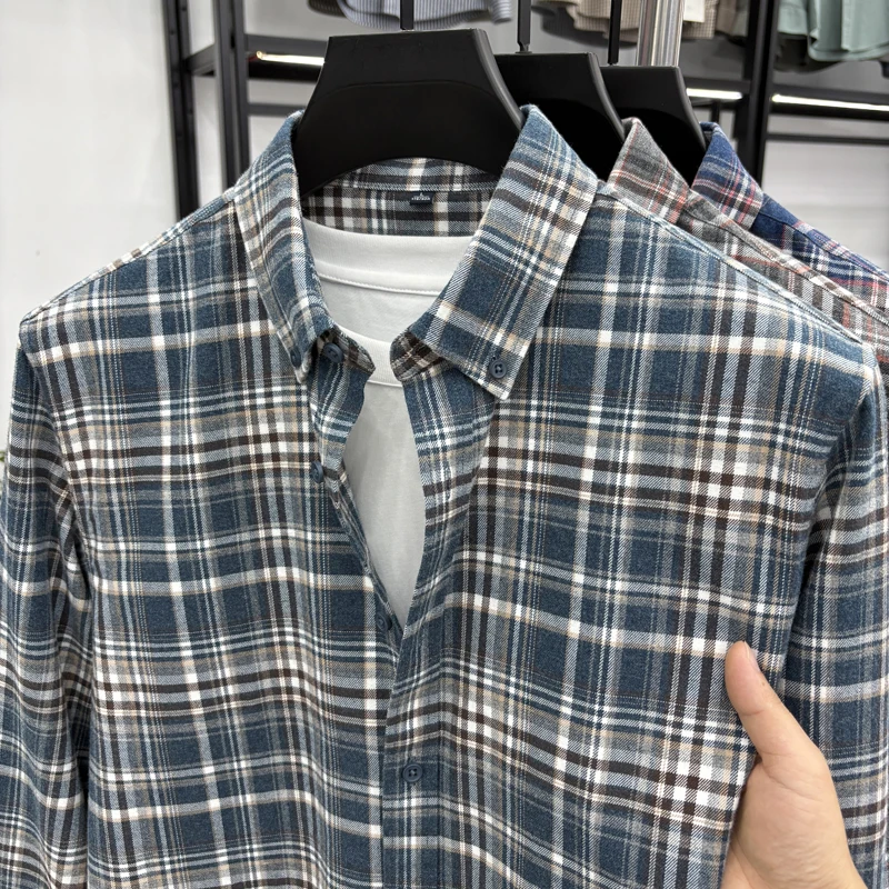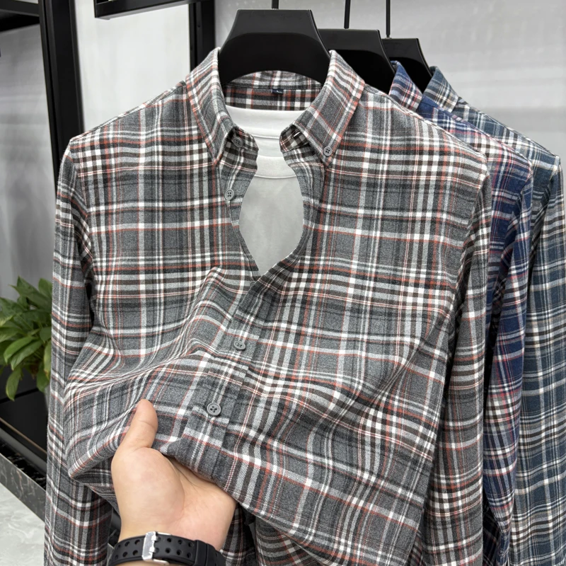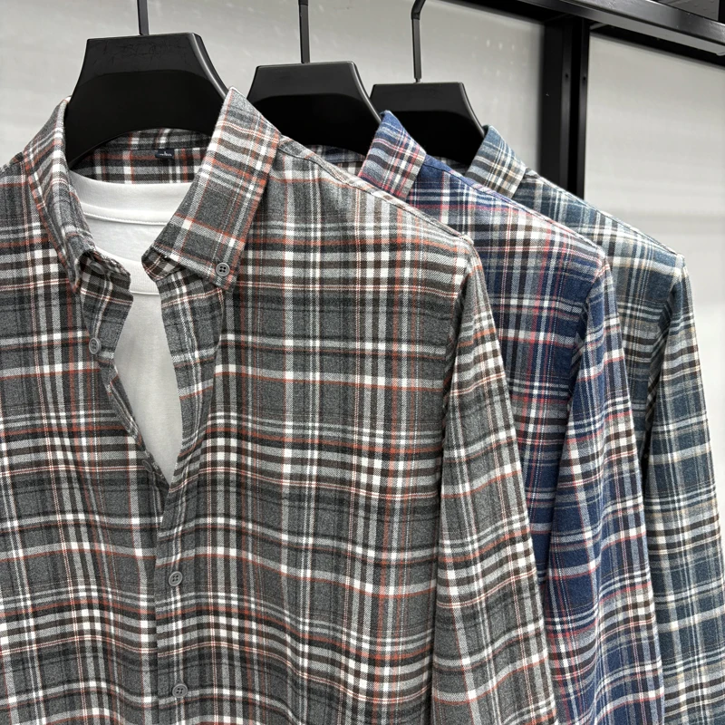 Camicia da uomo in cotone spazzolato, nuovo prodotto più venduto per l'autunno e l'inverno 2025, camicia a quadretti a maniche lunghe in cotone casual 1Camicia da uomo in cotone spazzolato, nuovo prodotto più venduto per l’autunno e l’inverno 2025, camicia a quadretti a maniche lunghe in cotone casual