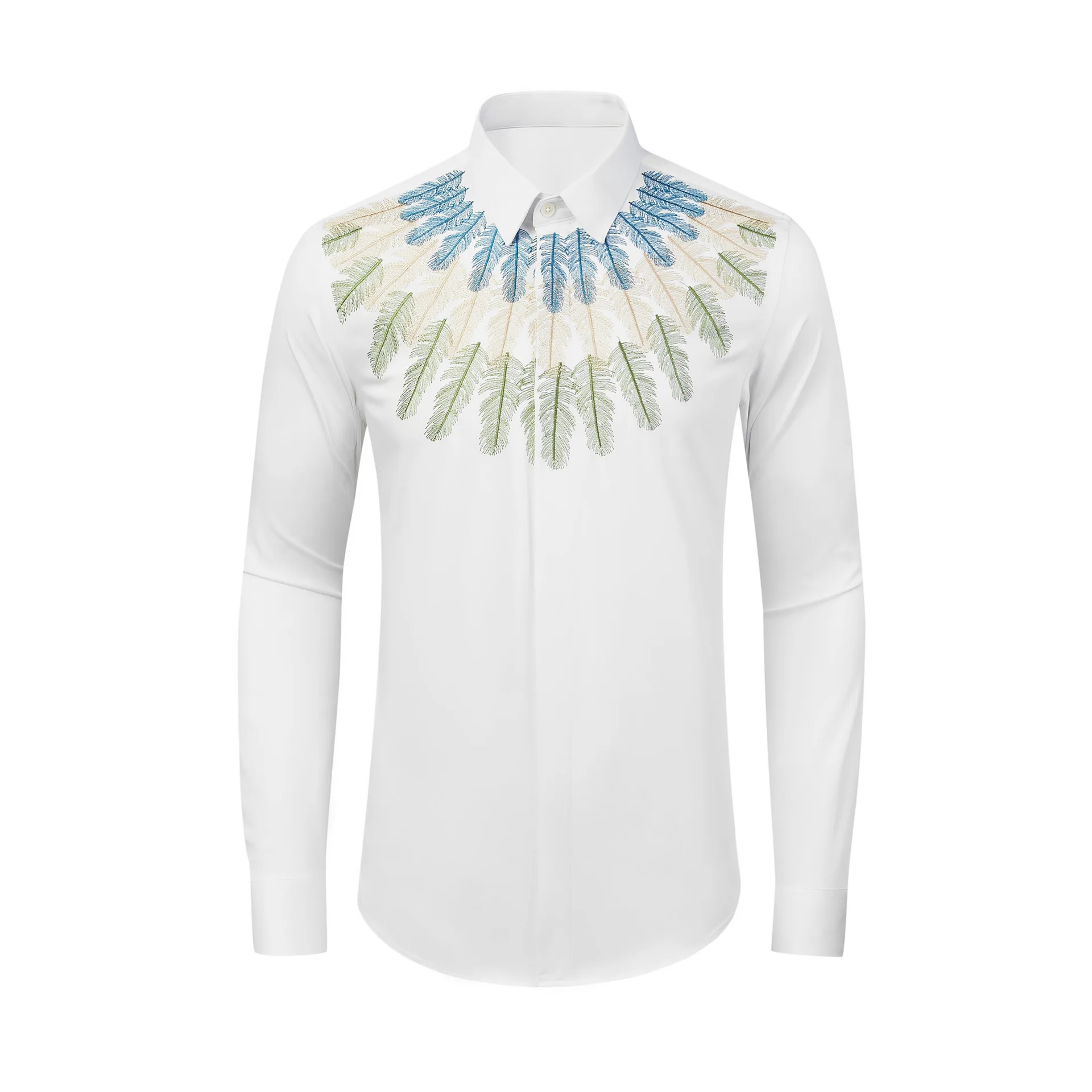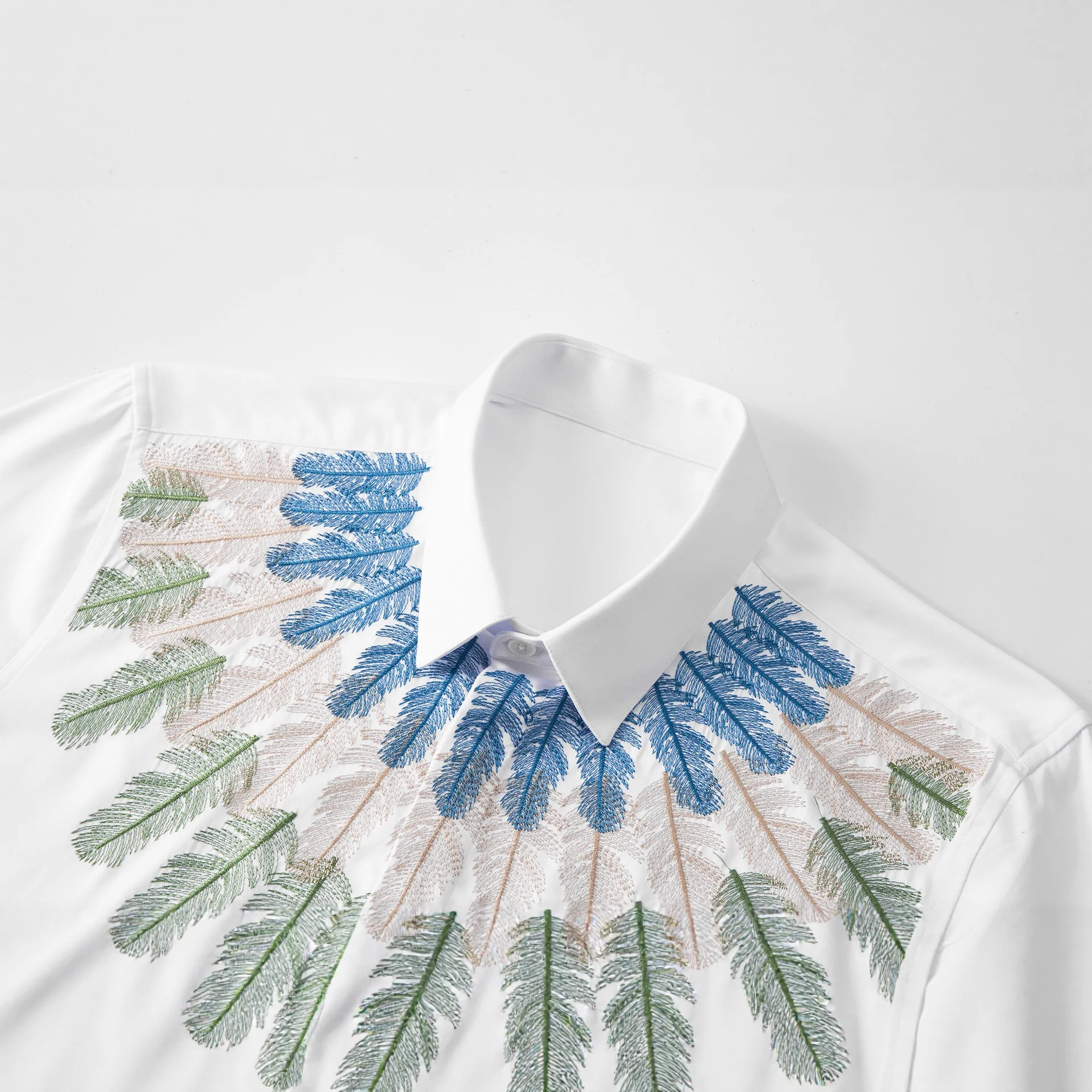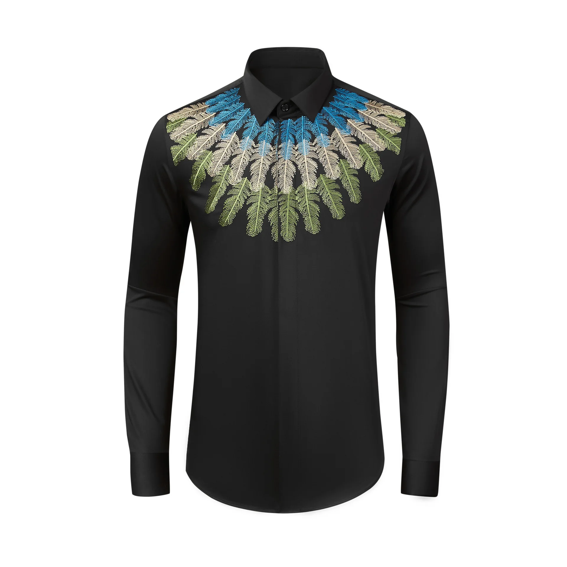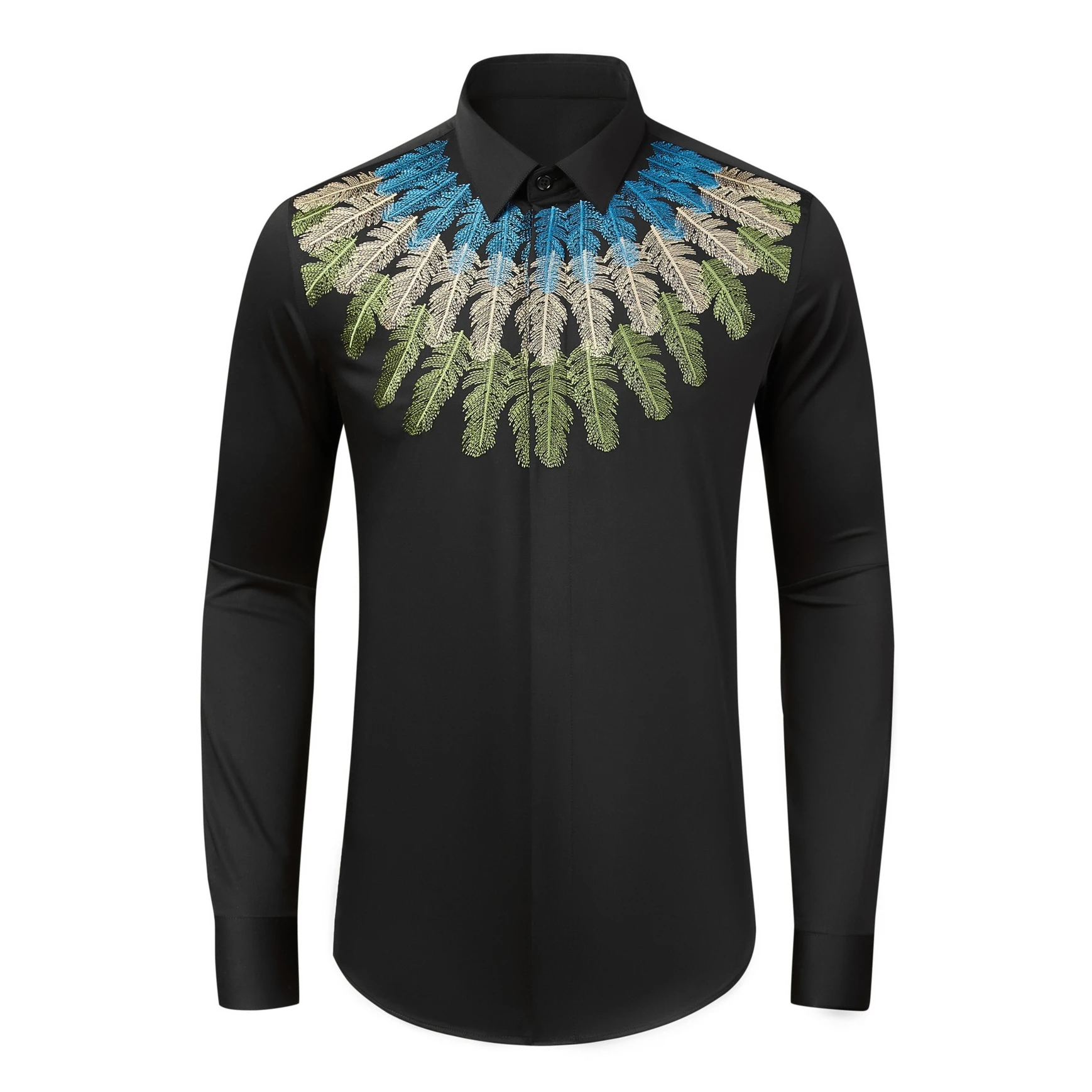 Camicia da uomo ricamata con piume a maniche lunghe autunno inverno Moda casual Camicia per performance sul palco sociale Streetwear Abbigliamento uomo