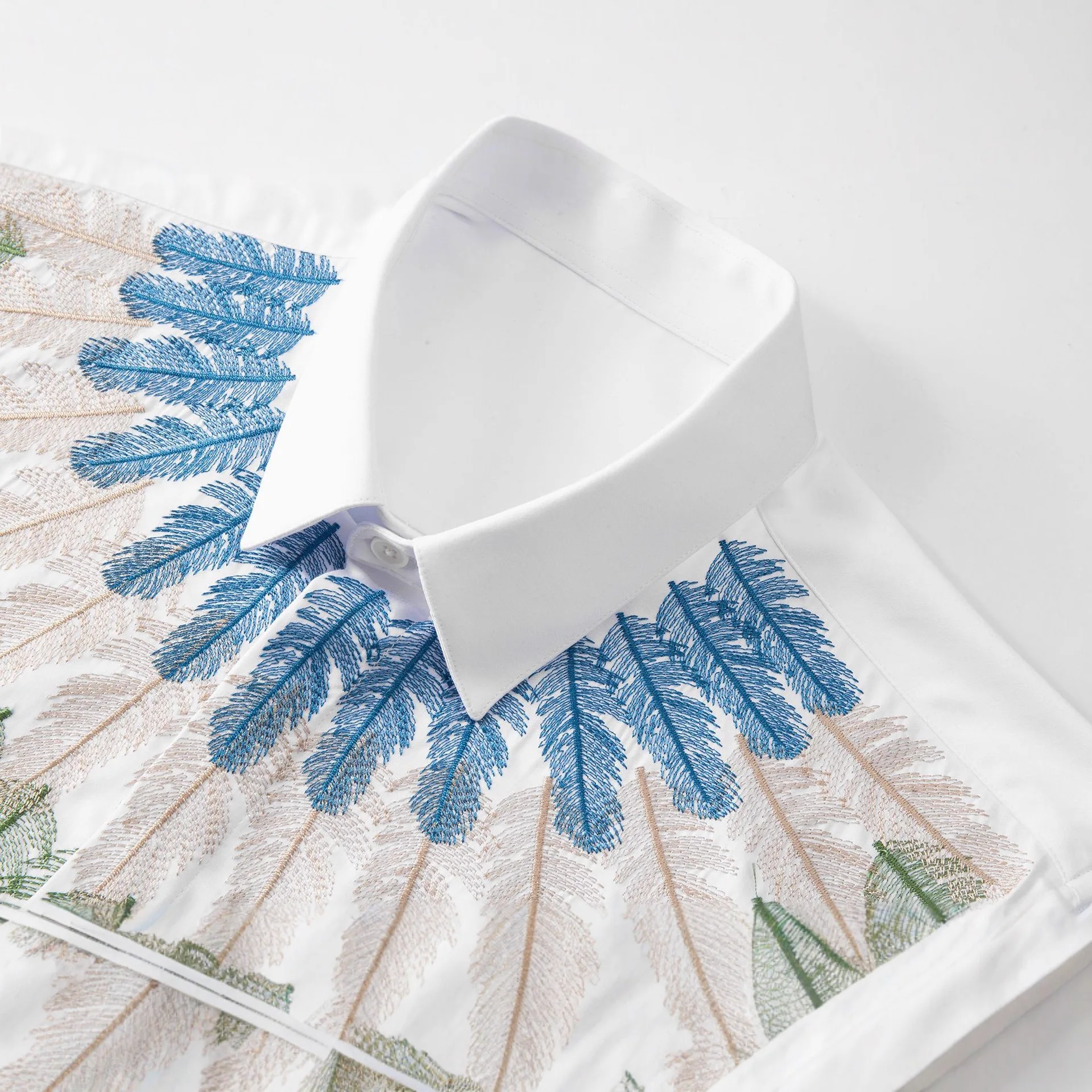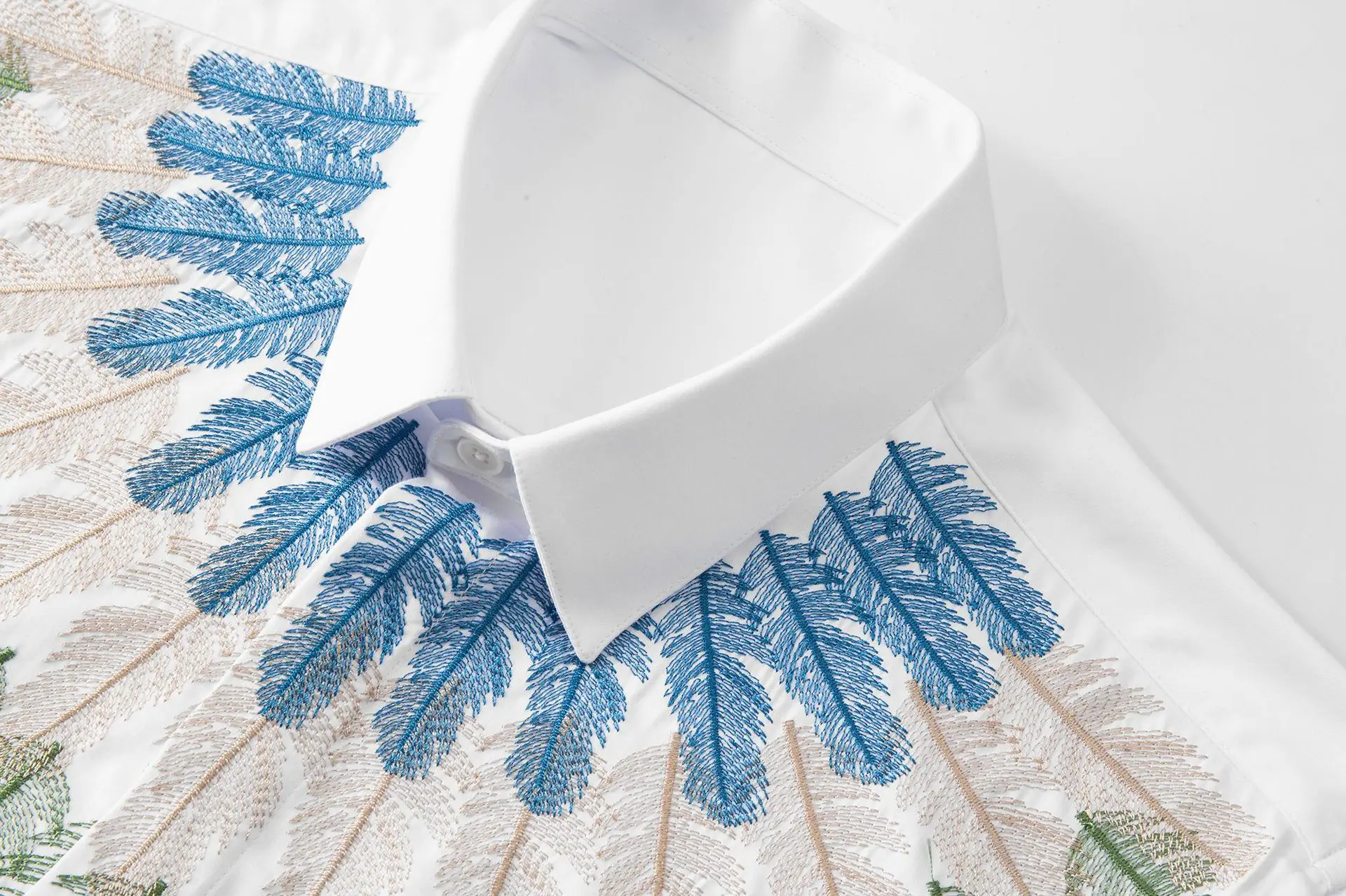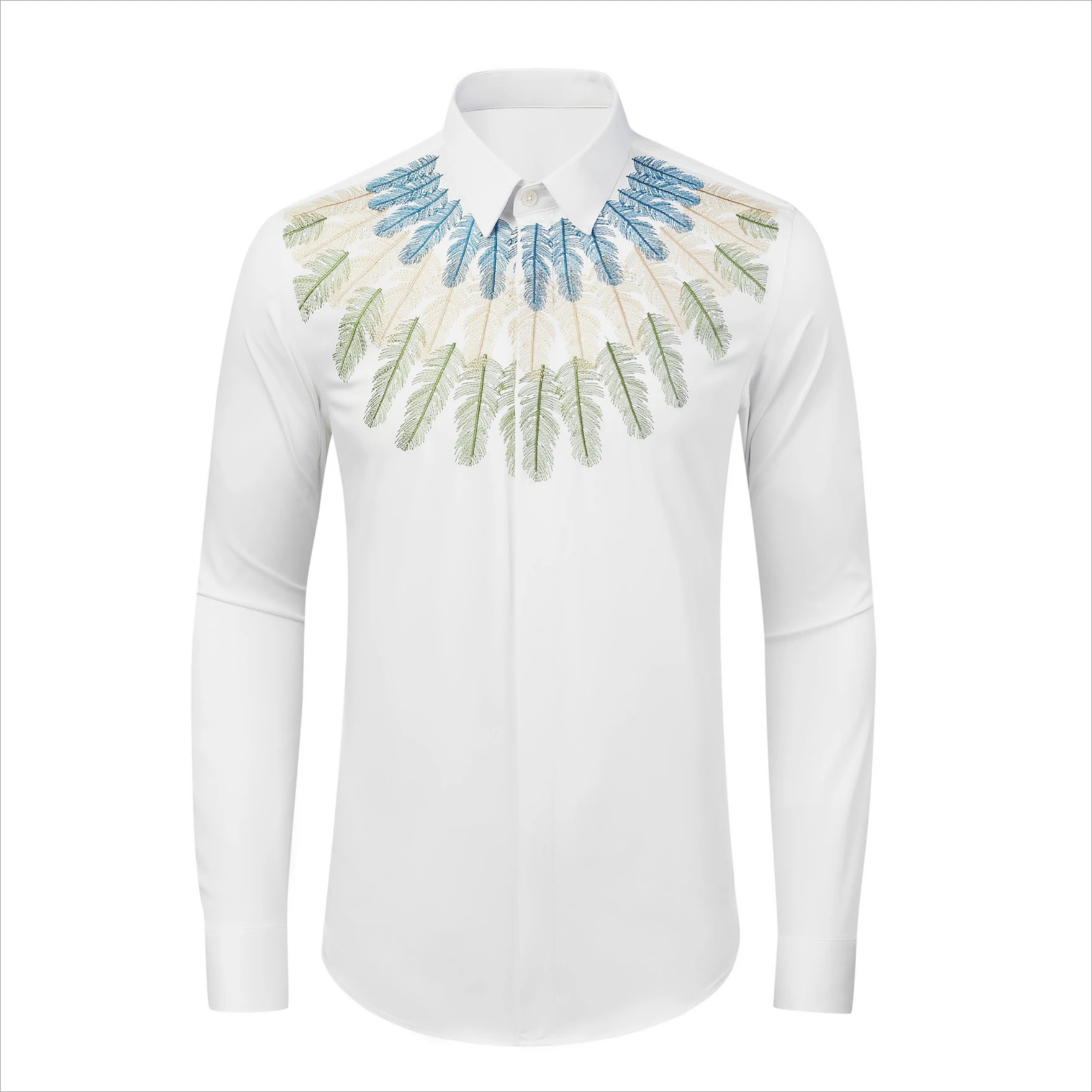 Camicia da uomo ricamata con piume a maniche lunghe autunno inverno Moda casual Camicia per performance sul palco sociale Streetwear Abbigliamento uomo