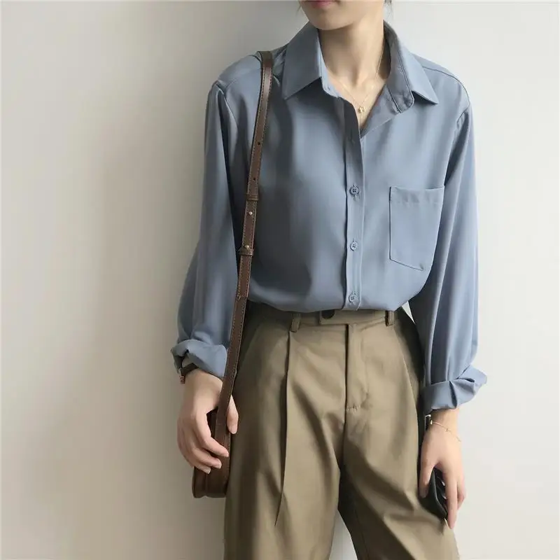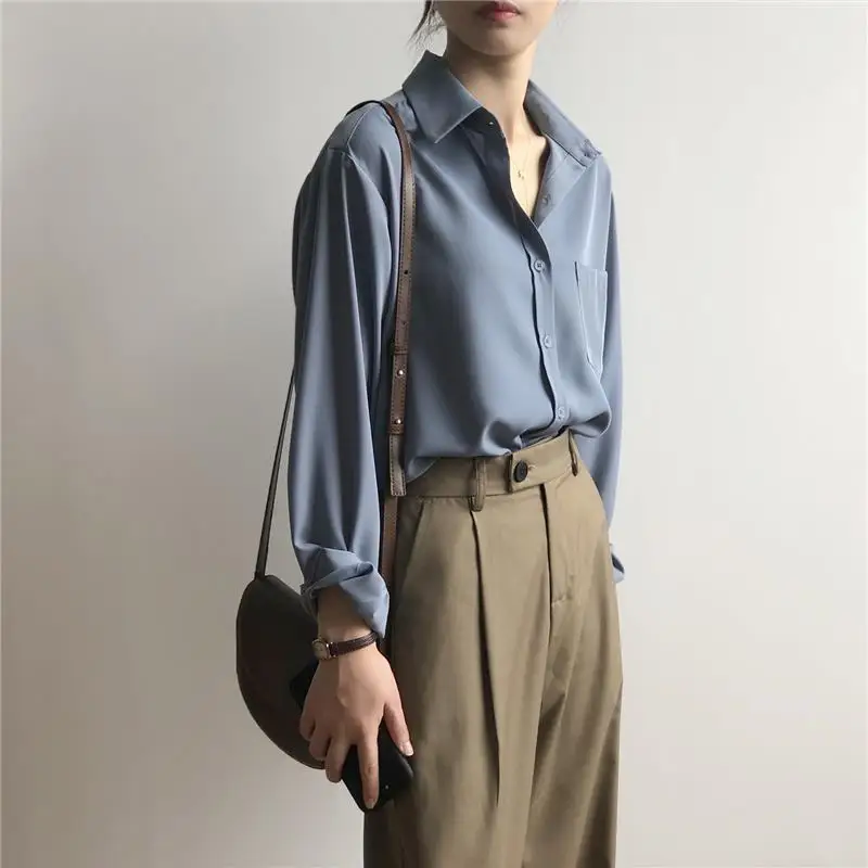 Camicia elegante rilassata in tinta unita da donna nuova autunno