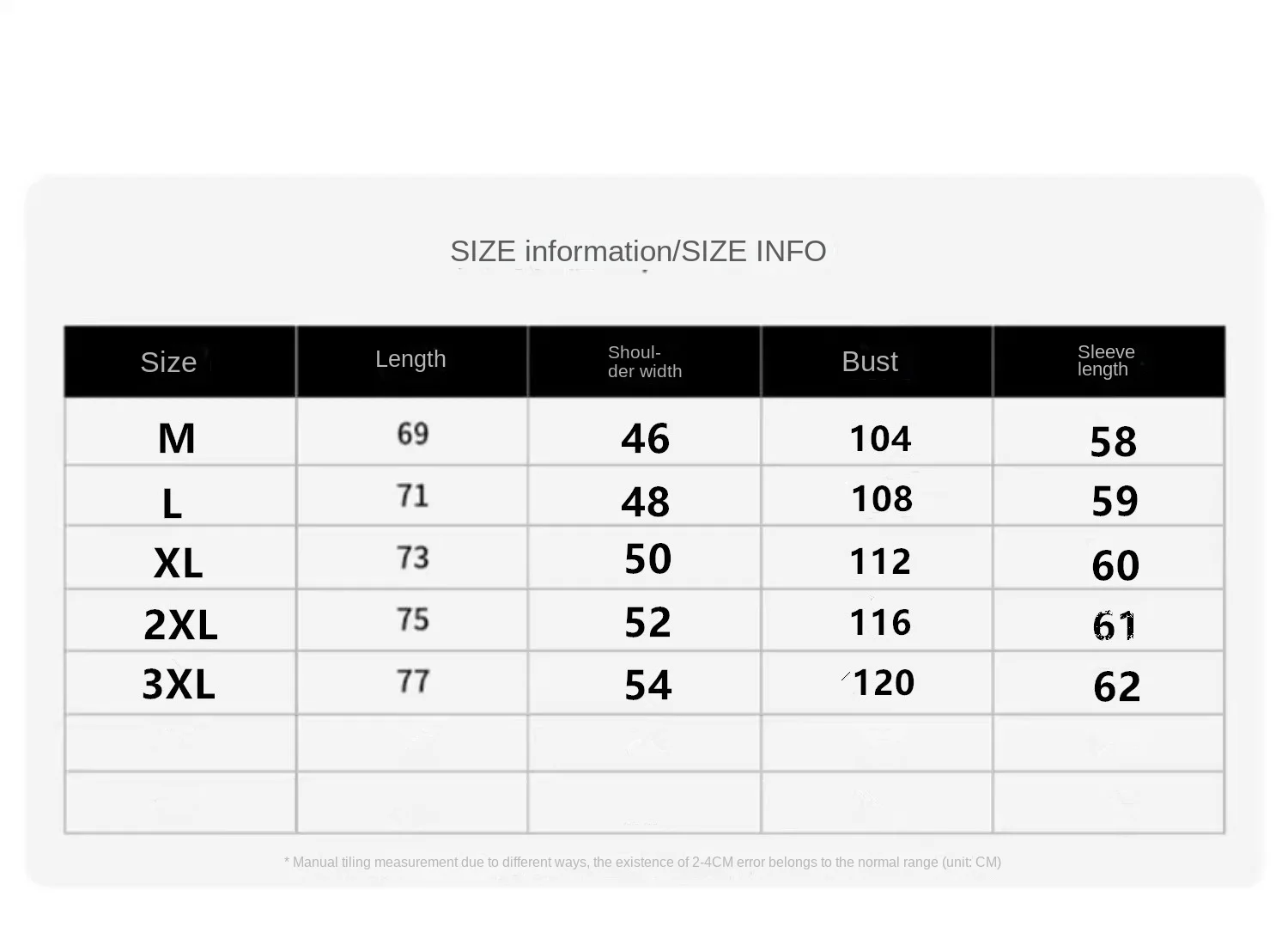 ●Misurato a mano, è consentita una differenza di 1-3 cm (1 cm = 0,3937 pollici).