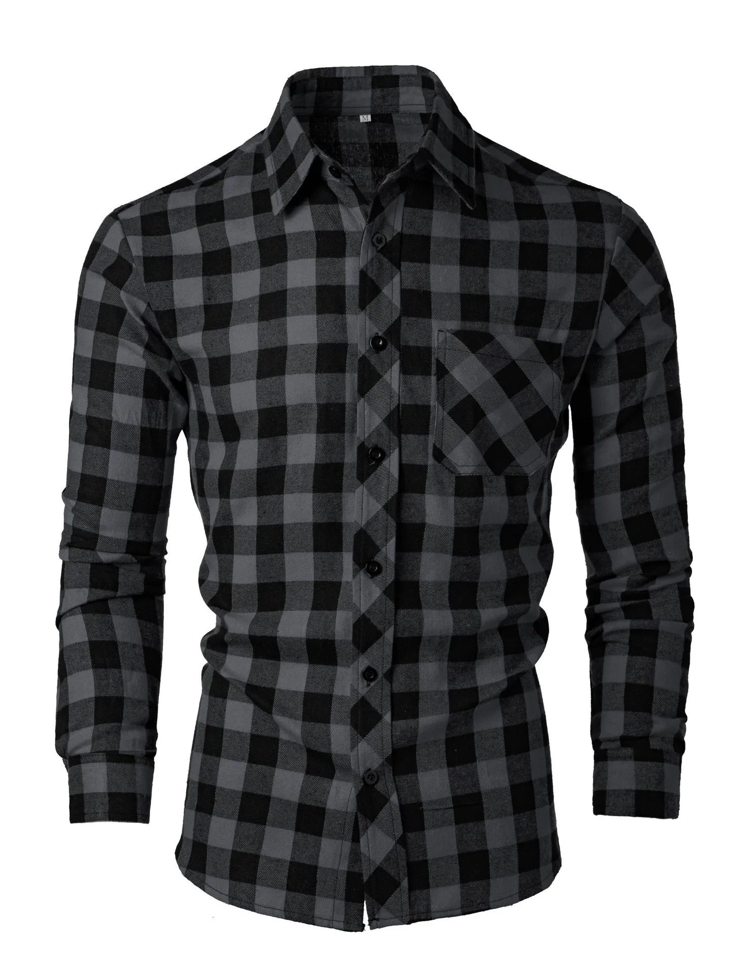Camicia scozzese con risvolto a maniche lunghe per il tempo libero nuova primavera e autunno da uomo