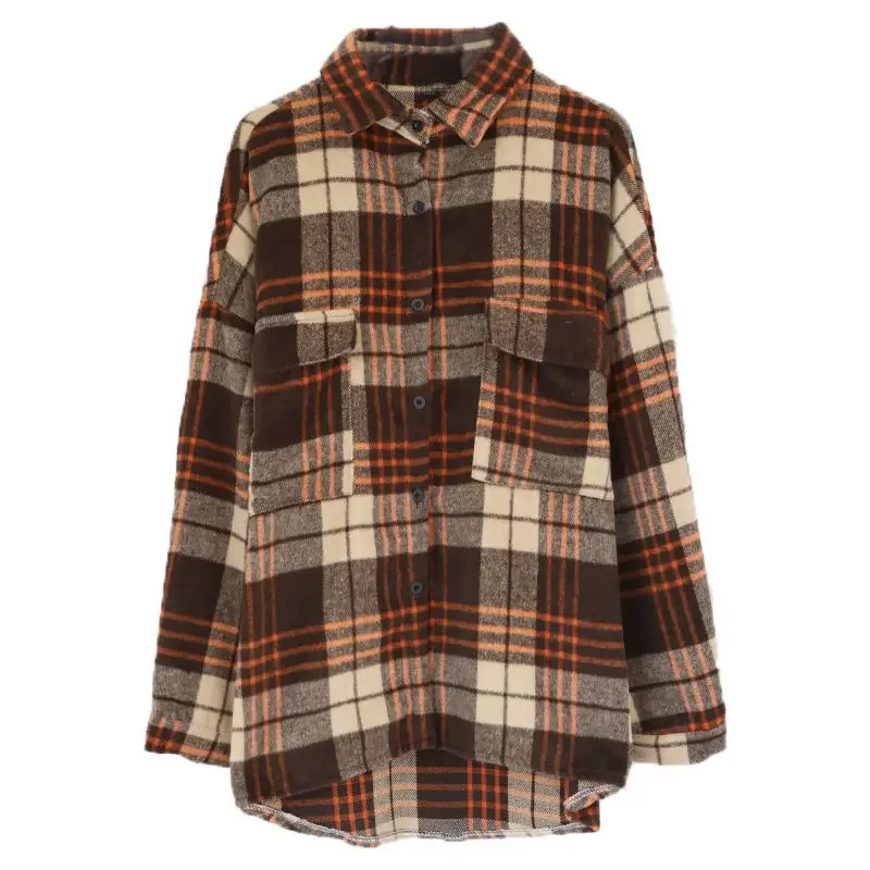 • Motivo scozzese:Il motivo scozzese aggiunge un tocco classico alla camicia, rendendola un capo versatile che può essere abbinato a vari outfit.