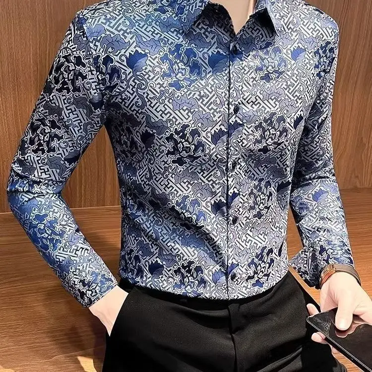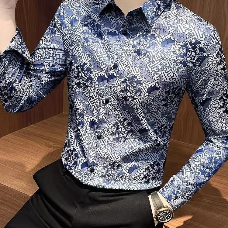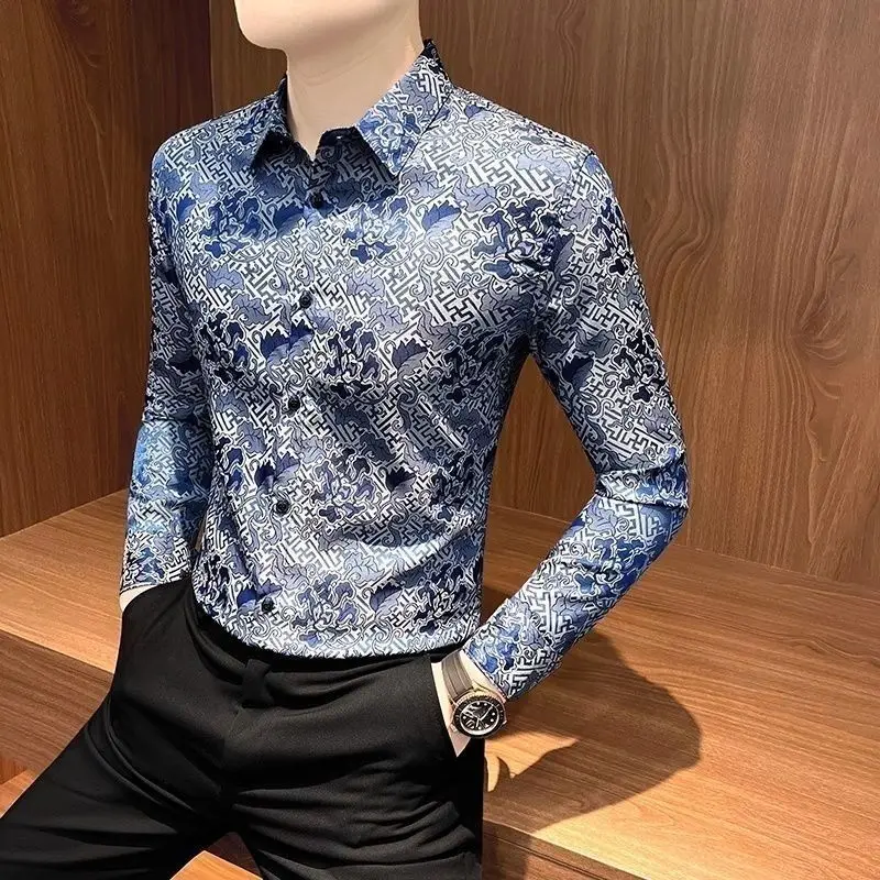Camicia slim fit stampata a maniche lunghe elegante da uomo