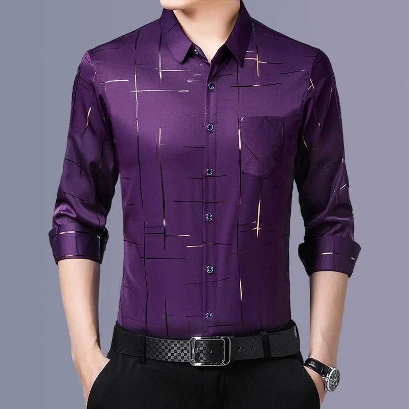 Camicia stampata a maniche lunghe casual e alla moda da uomo, top da lavoro non stirabili e resistenti alle rughe