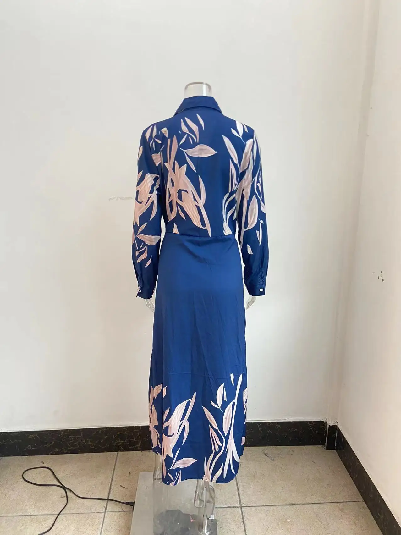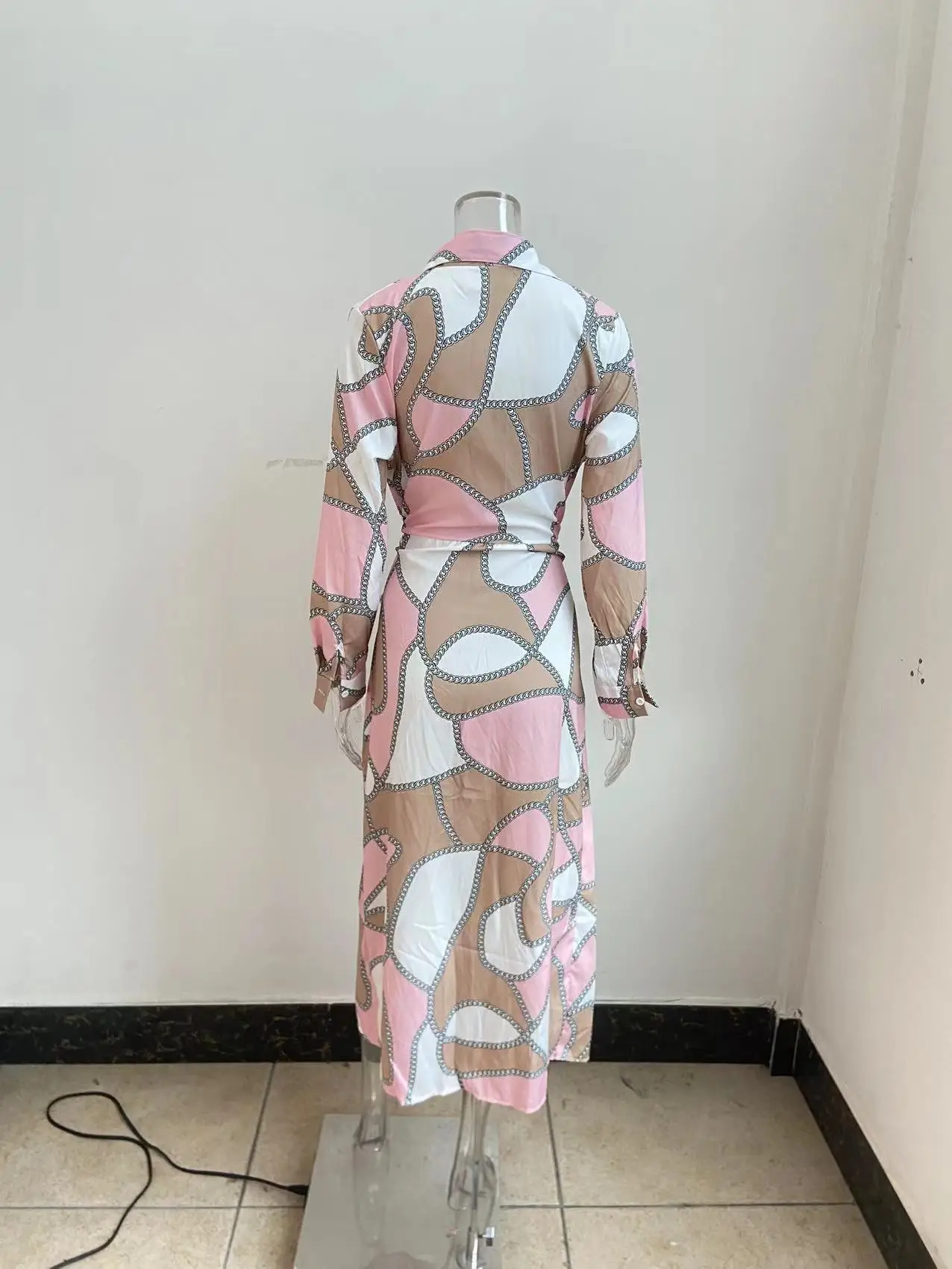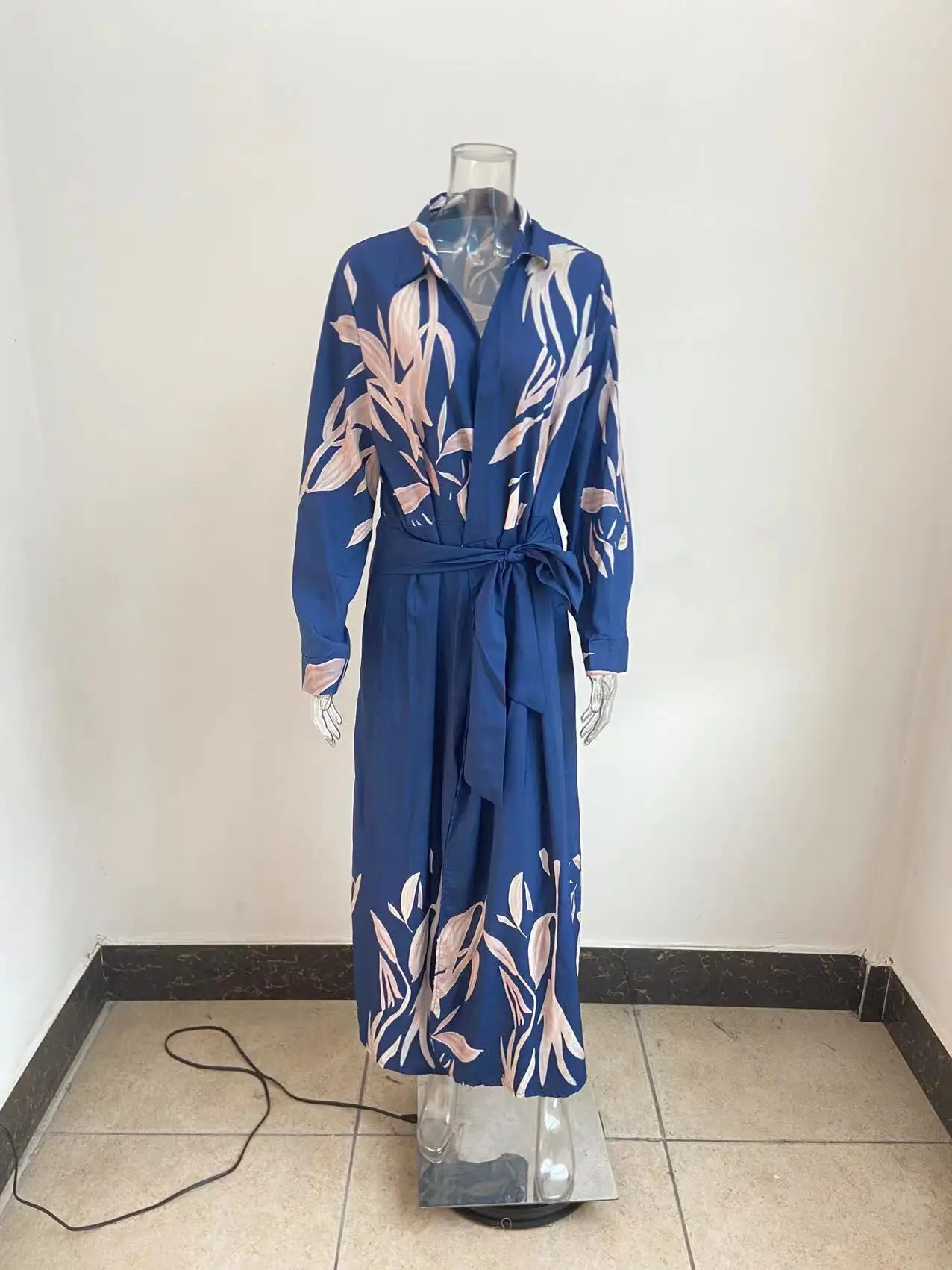 Camicia stampata alla moda da donna primavera estate nuovo prodotto con colletto cinturino in vita abito casual a righe medio-lunghe