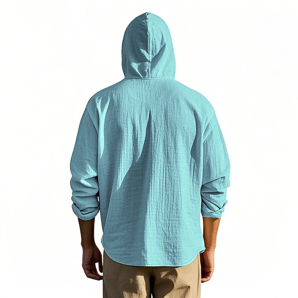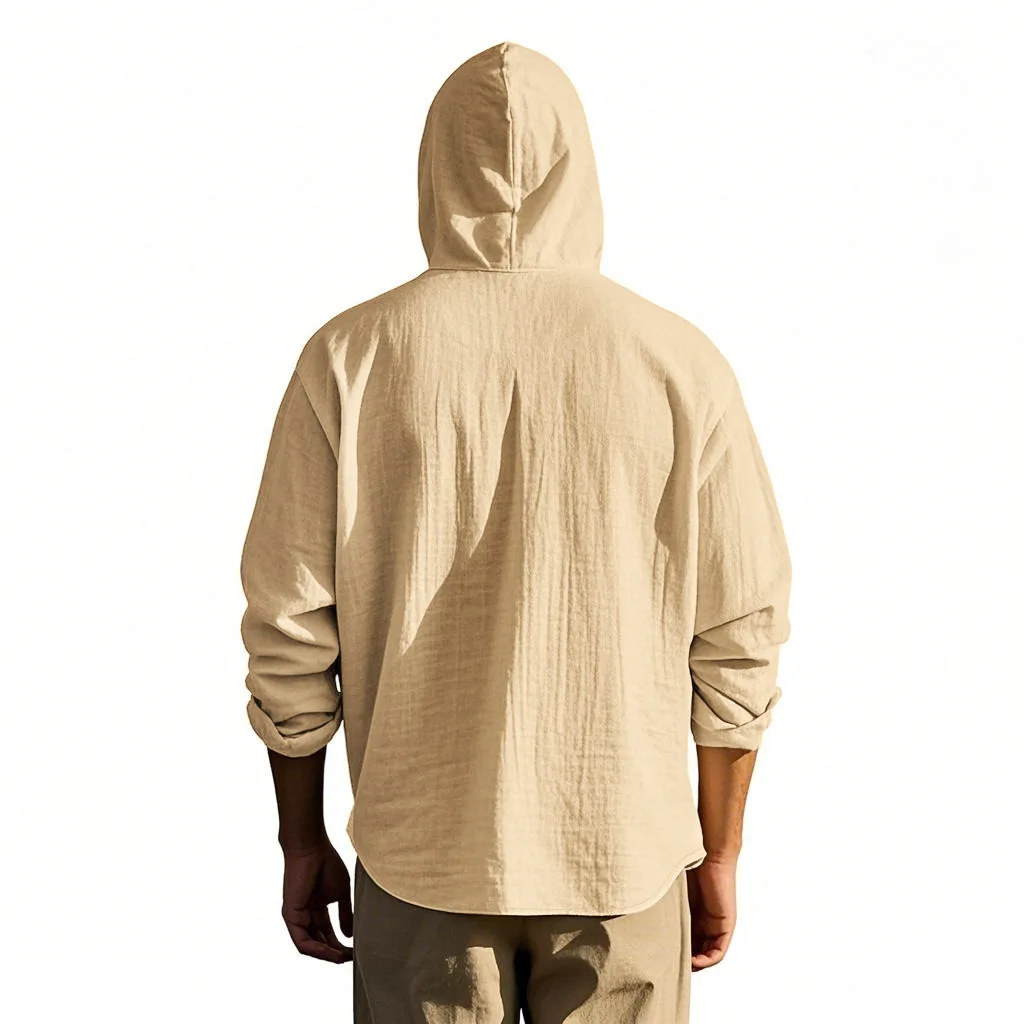 Camicie da uomo Felpa con cappuccio a maniche lunghe in cotone e lino Sport Tempo libero Abbigliamento da uomo ampio e caldo Stagione primaverile e autunnale