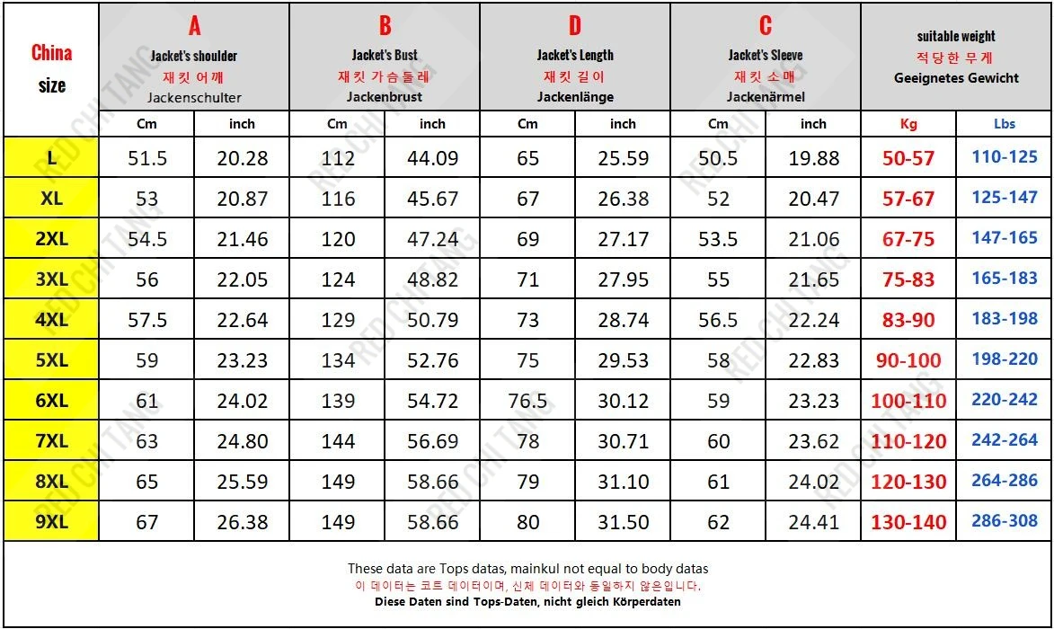 Ad esempio, se la tua taglia europea è XL, molto probabilmente la tua taglia cinese sarebbe 4XL.