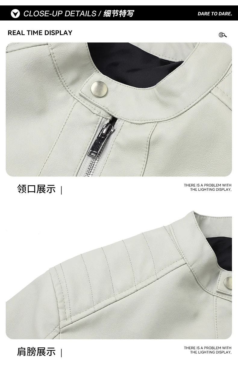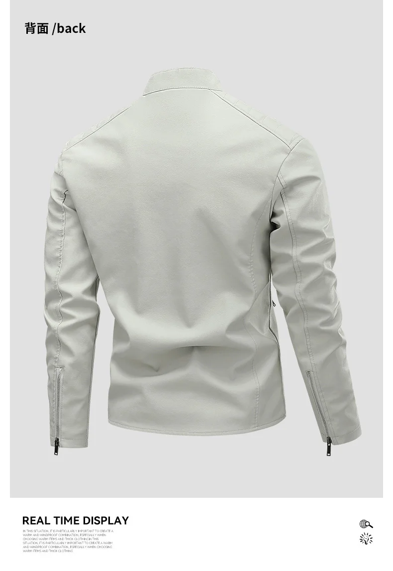 Cappotto da giacca con colletto alla coreana da uomo autunnale Giacca da moto in pelle nera Cerniera tinta unita Streetwear Giacca da motociclista invernale calda da uomo