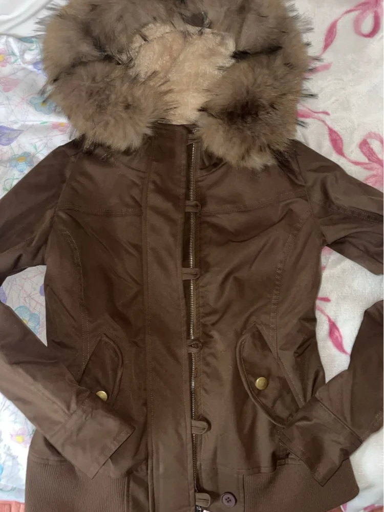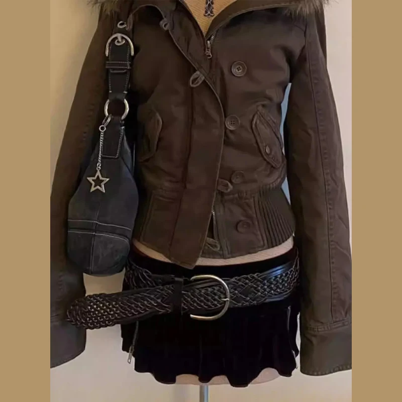 Capispalla moda Giacche marroni Cappotto da donna Slim Fit Colletto in pelliccia vintage Kpop Femme Abiti con cerniera Harajuku Y2k High Street Top 1Capispalla moda Giacche marroni Cappotto da donna Slim Fit Colletto in pelliccia vintage Kpop Femme Abiti con cerniera Harajuku Y2k High Street Top
