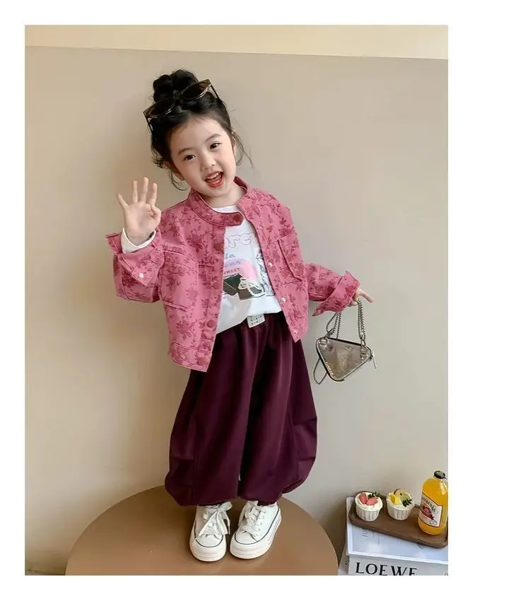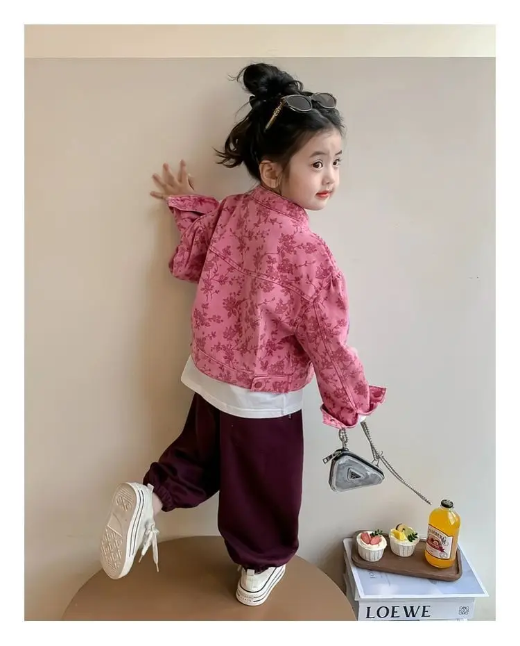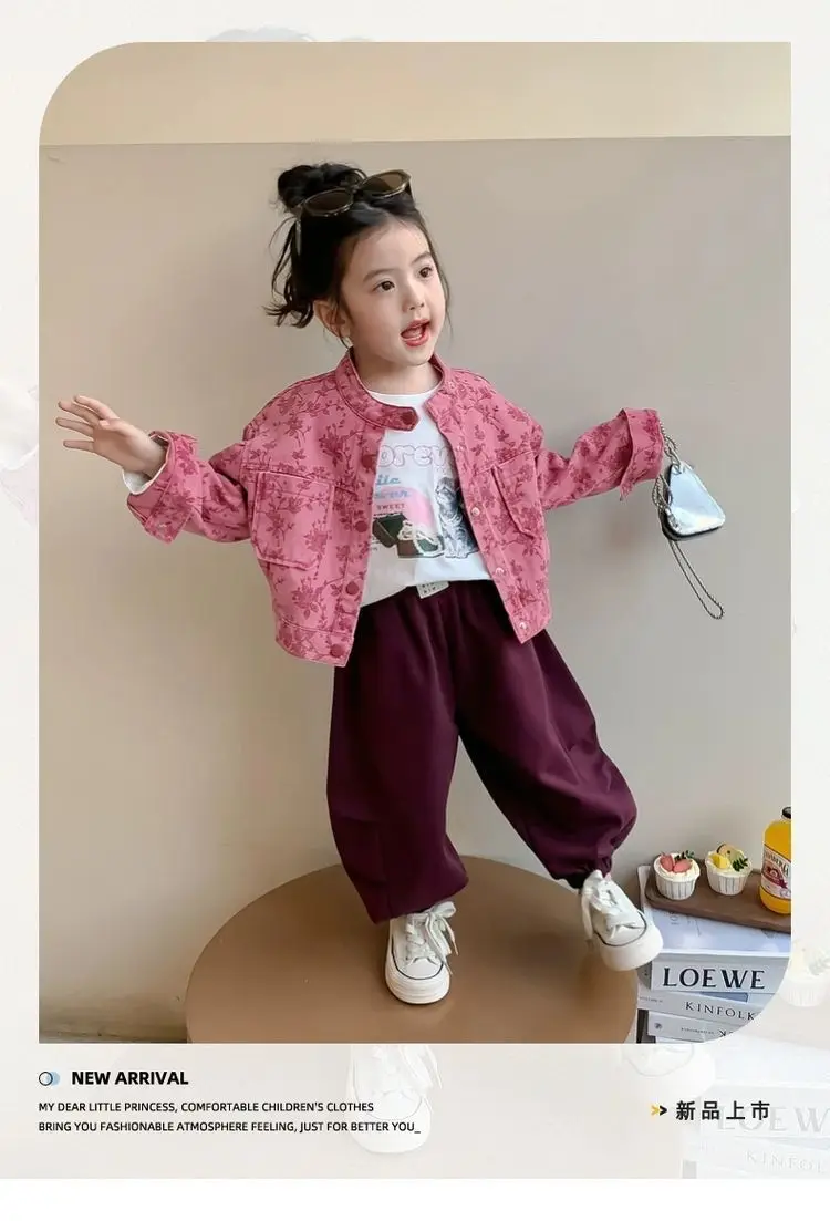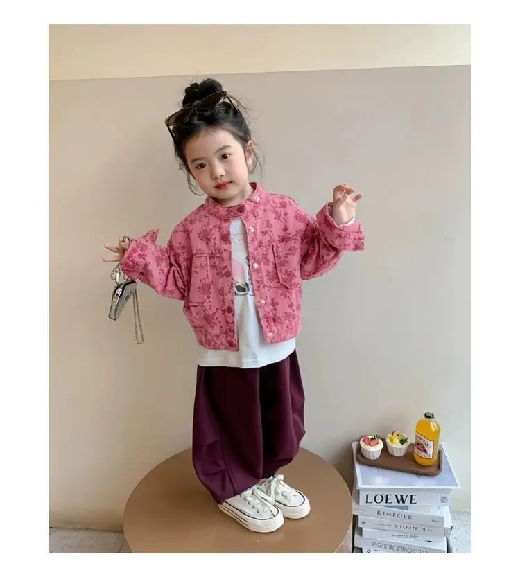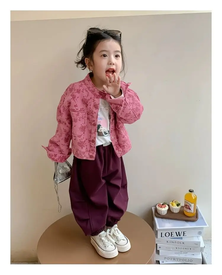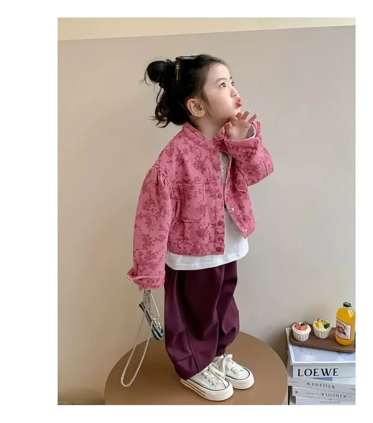 Capispalla per bambini Giacca di jeans stile corto per ragazze Moda Streetwear Abiti Bambini Top corto in denim vintage Cappotto rosa 2-12 anni