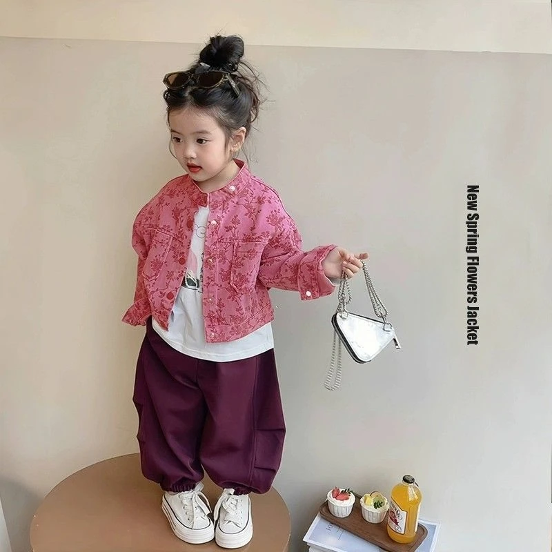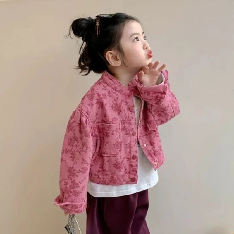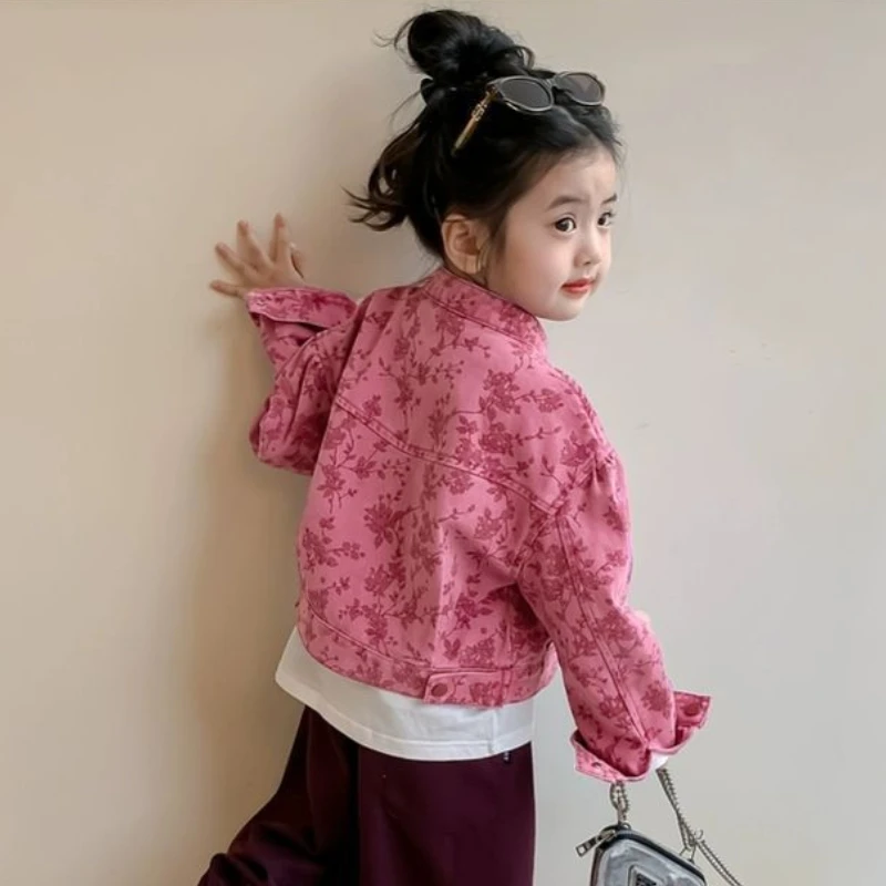Capispalla per bambini Giacca di jeans stile corto per ragazze Moda Streetwear Abiti Bambini Top corto in denim vintage Cappotto rosa 2-12 anni