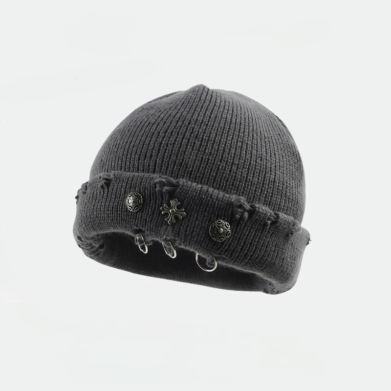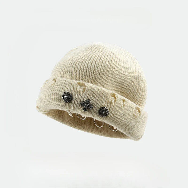 Cappello di lana traforato con anello incrociato retrò hip-hop da strada per donna, cappello in pelle di melone lavorato a maglia yuppie, cappello freddo per uomo