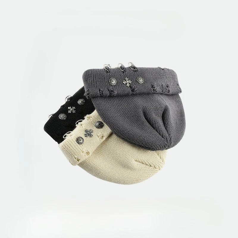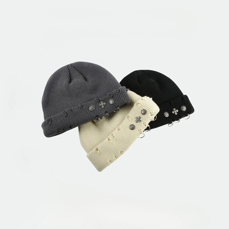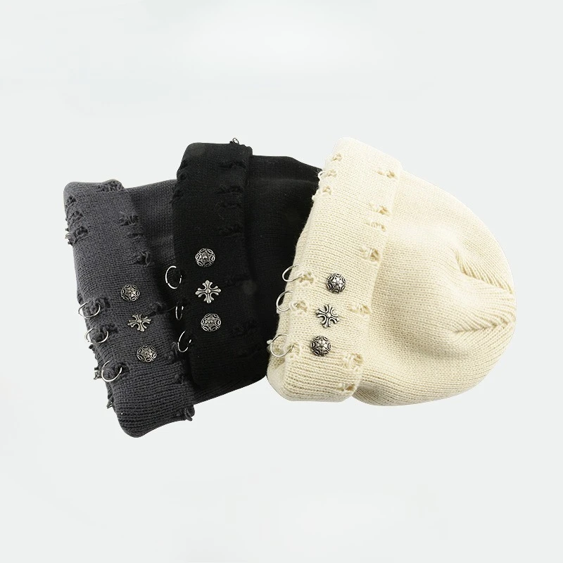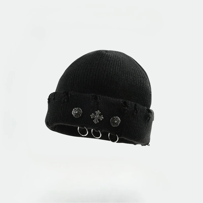 Cappello di lana traforato con anello incrociato retrò hip-hop da strada per donna, cappello in pelle di melone lavorato a maglia yuppie, cappello freddo per uomo