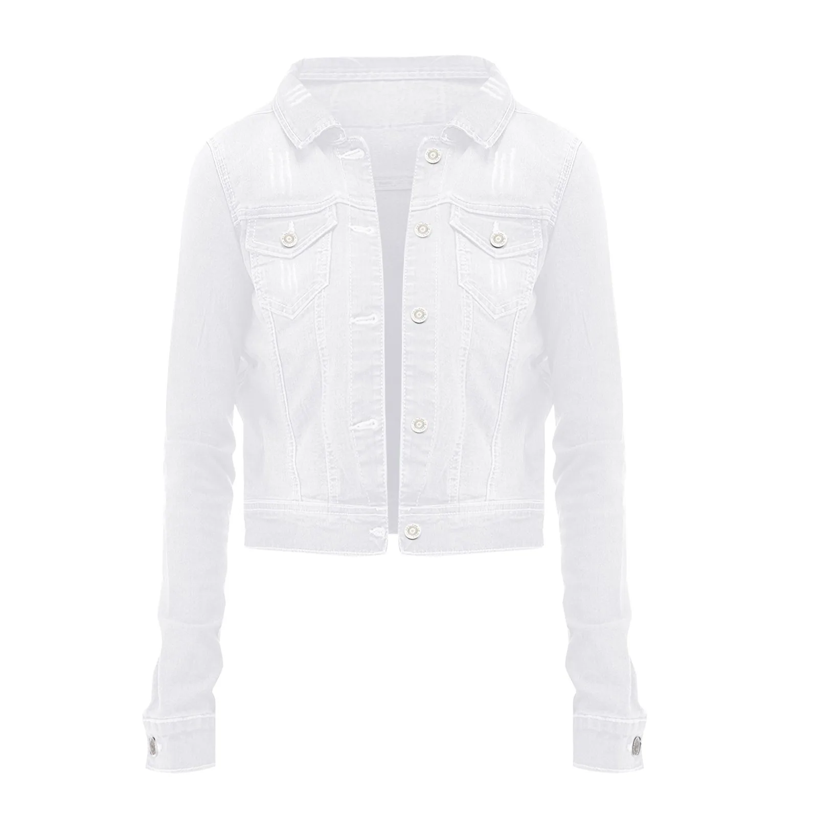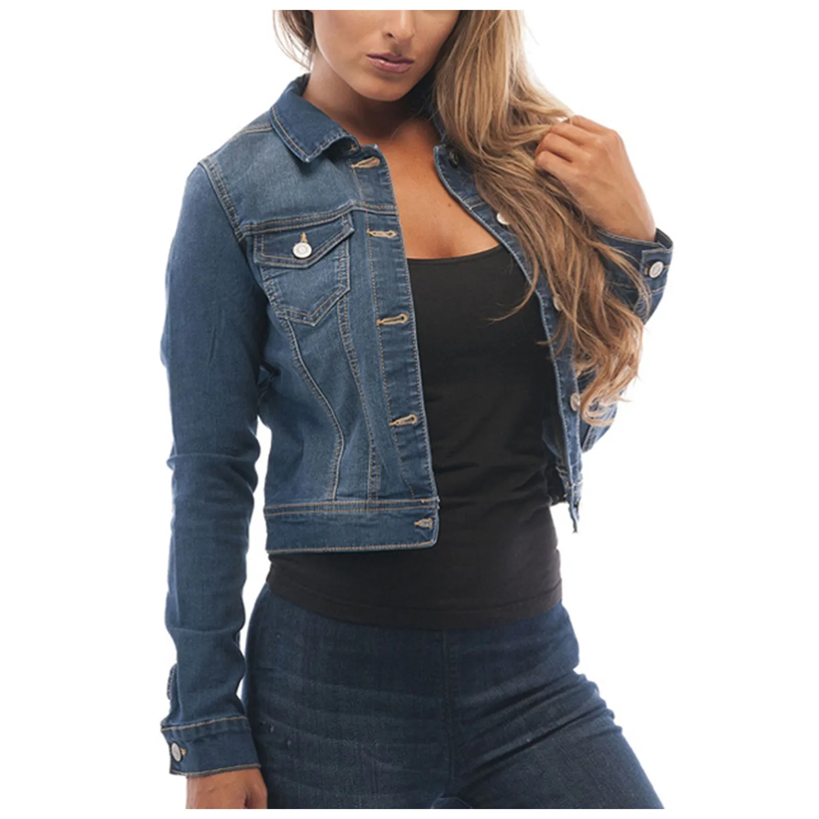 Lady Basic Button Down Denim Jean Jacket Denim Jean Jacket For Women Button Up Long Sleeve Stone Washed