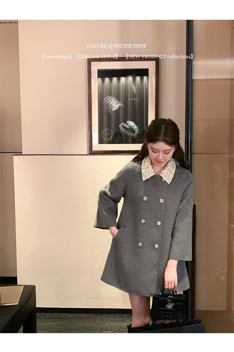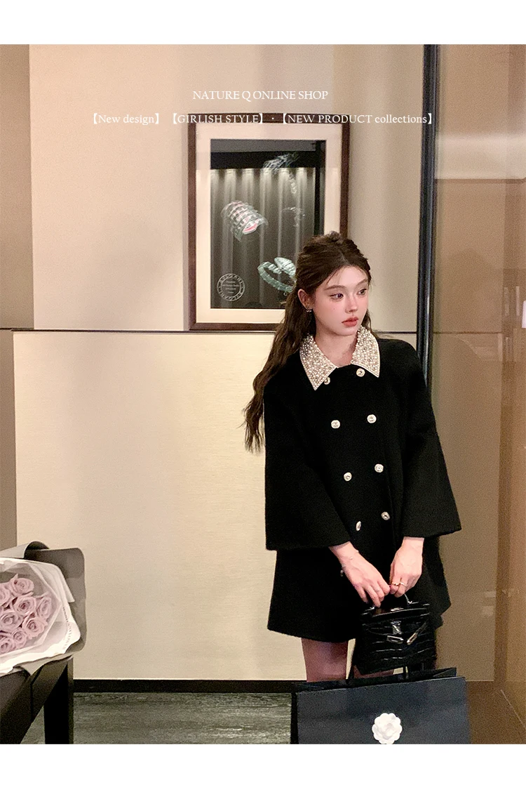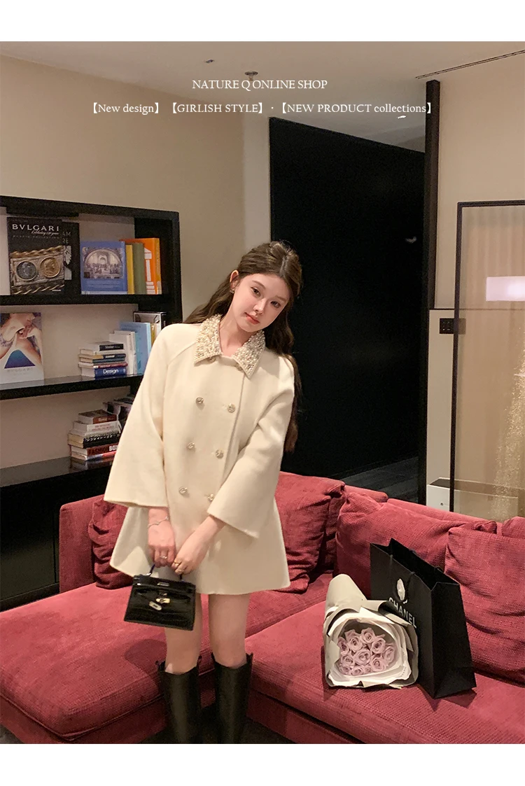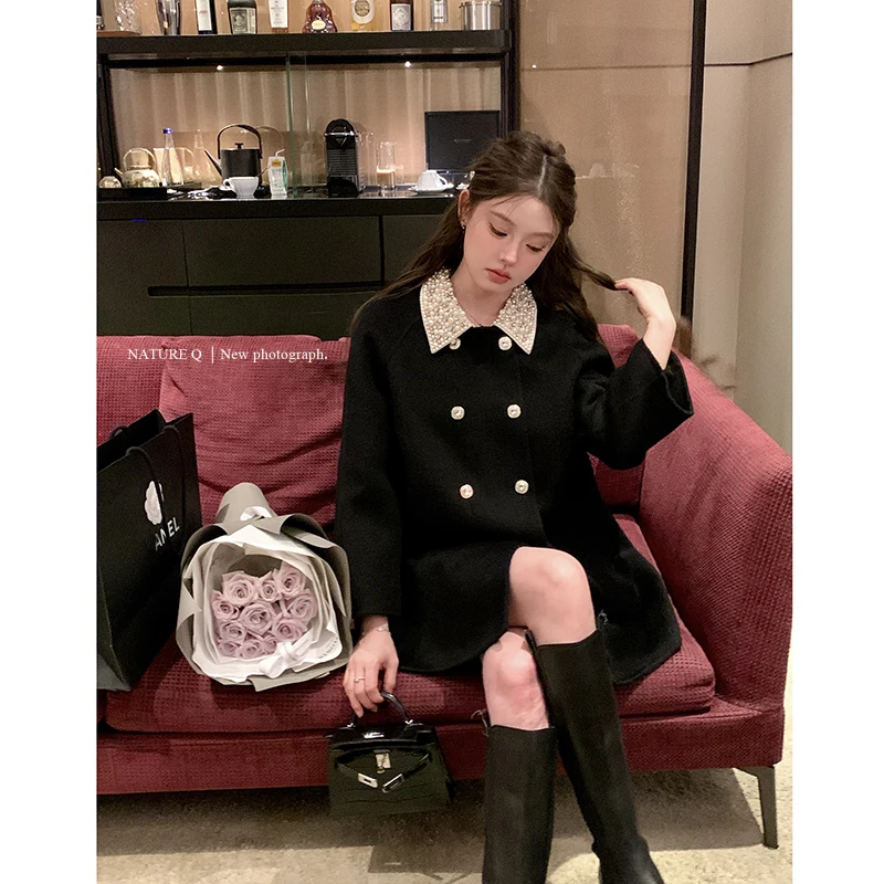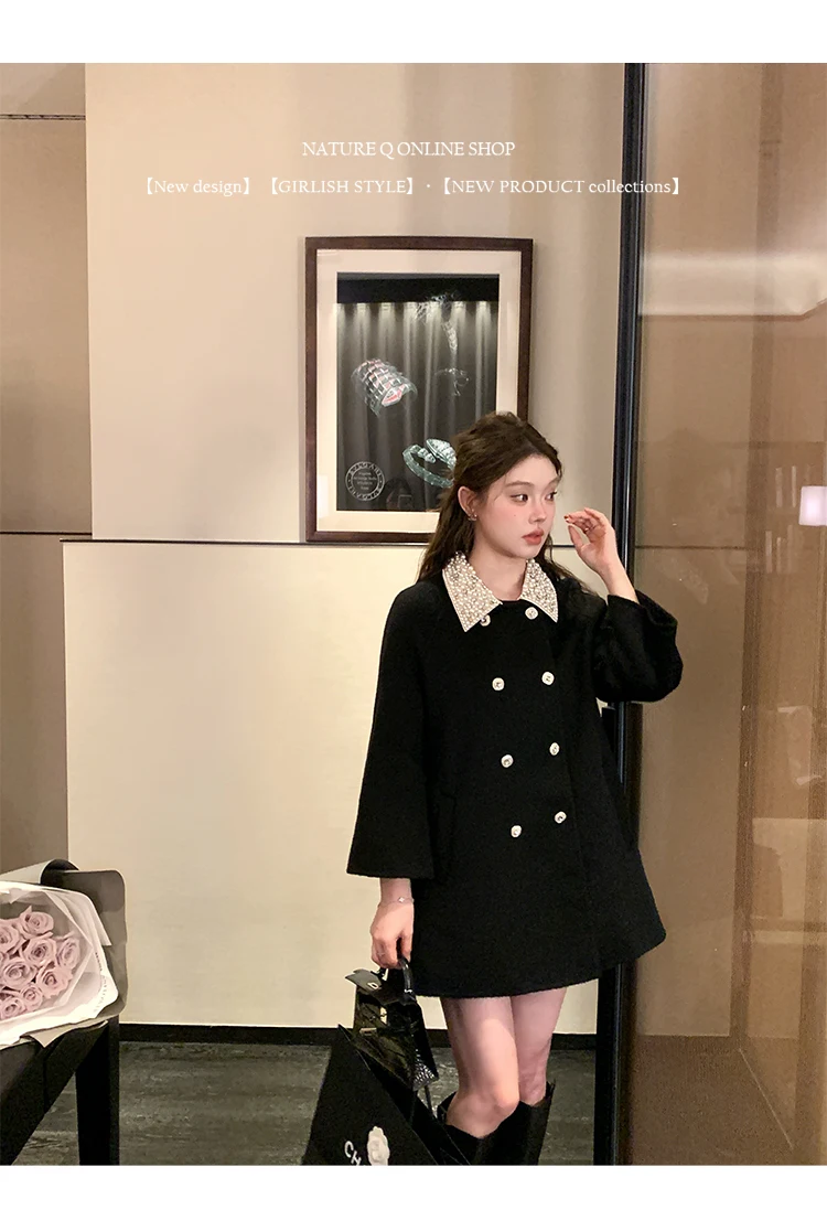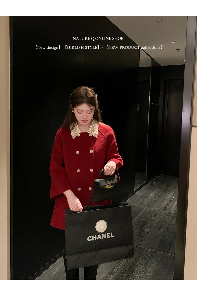 Cappotti larghi a maniche lunghe patchwork nero beige rosso da donna francese 2025 Autunno Inverno Nuovo doppio petto Festival Top Streetwear
