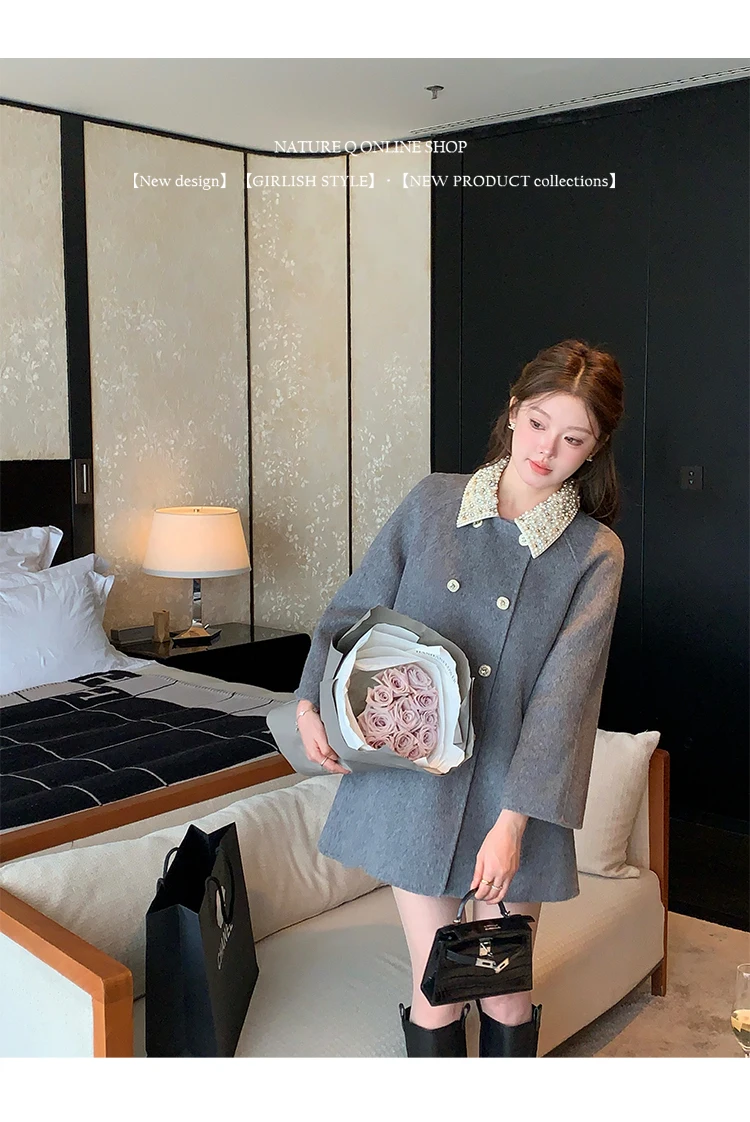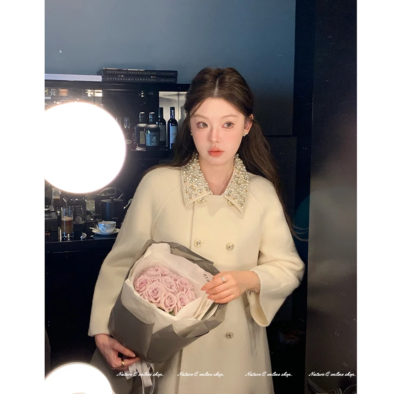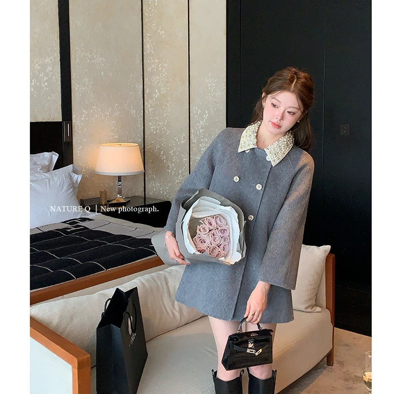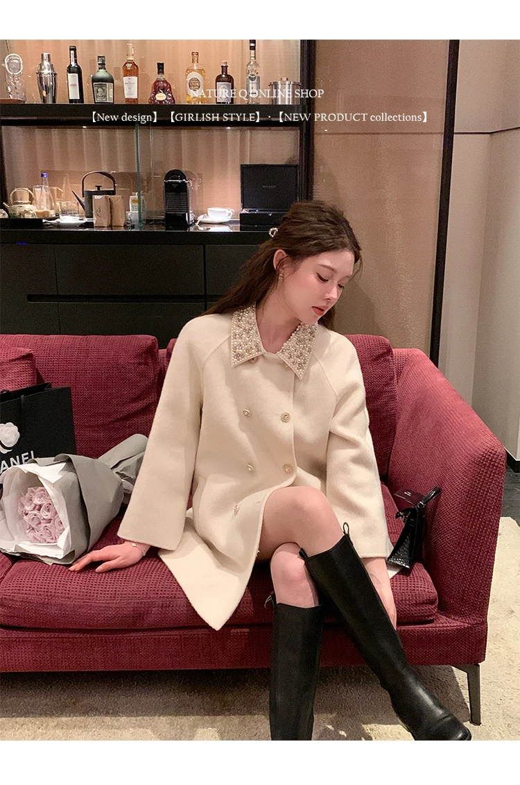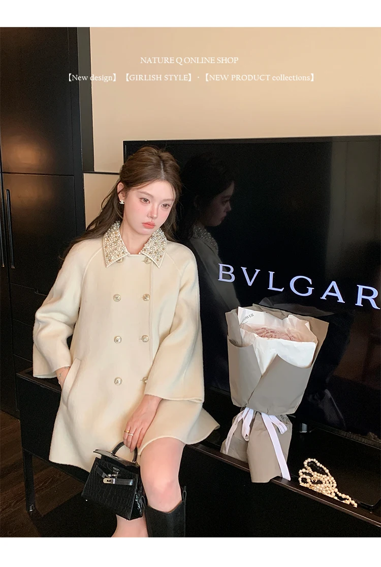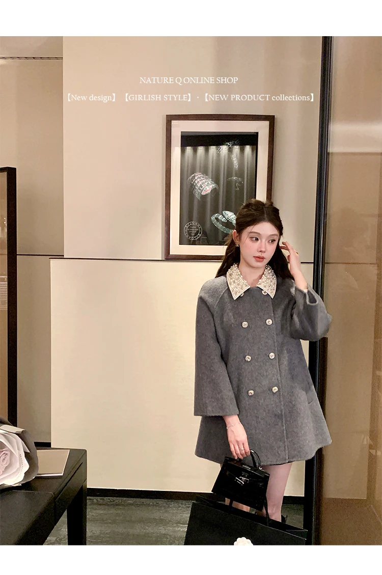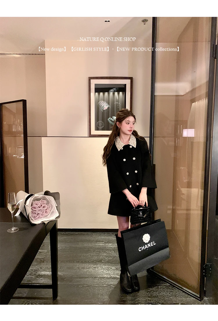 Cappotti larghi a maniche lunghe patchwork nero beige rosso da donna francese 2025 Autunno Inverno Nuovo doppio petto Festival Top Streetwear